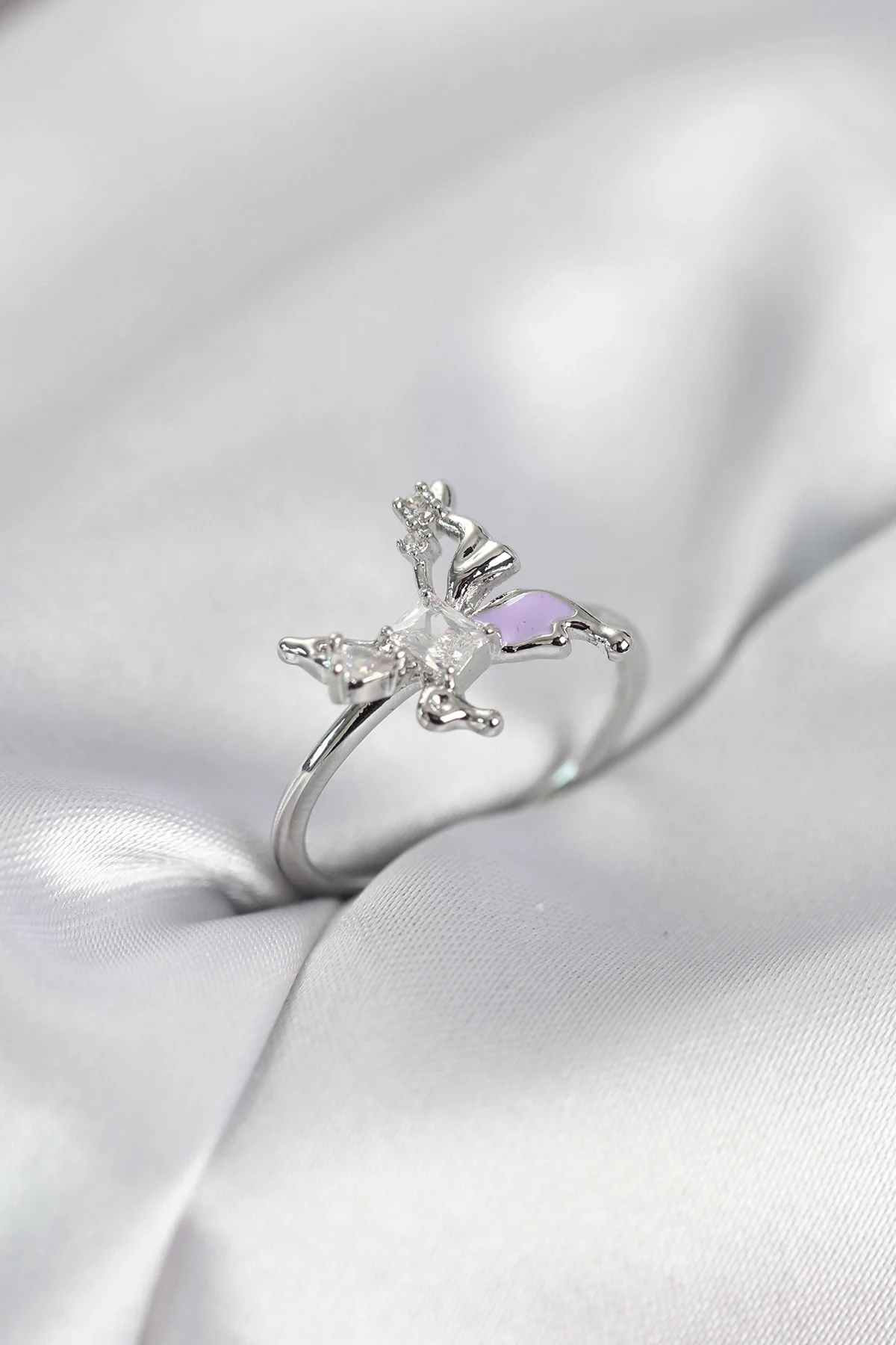 Gümüş Renk Kelebek Model Zirkon Taşlı Kadın Yüzük
