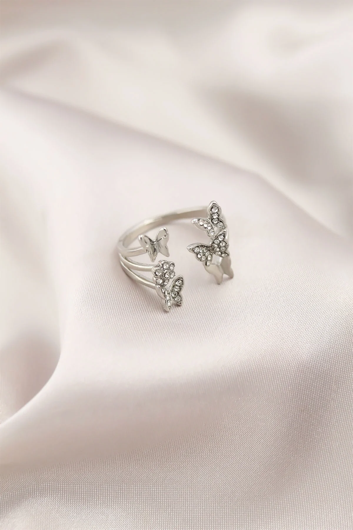 Gümüş Renk Metal Kelebek Model Kadın Yüzük