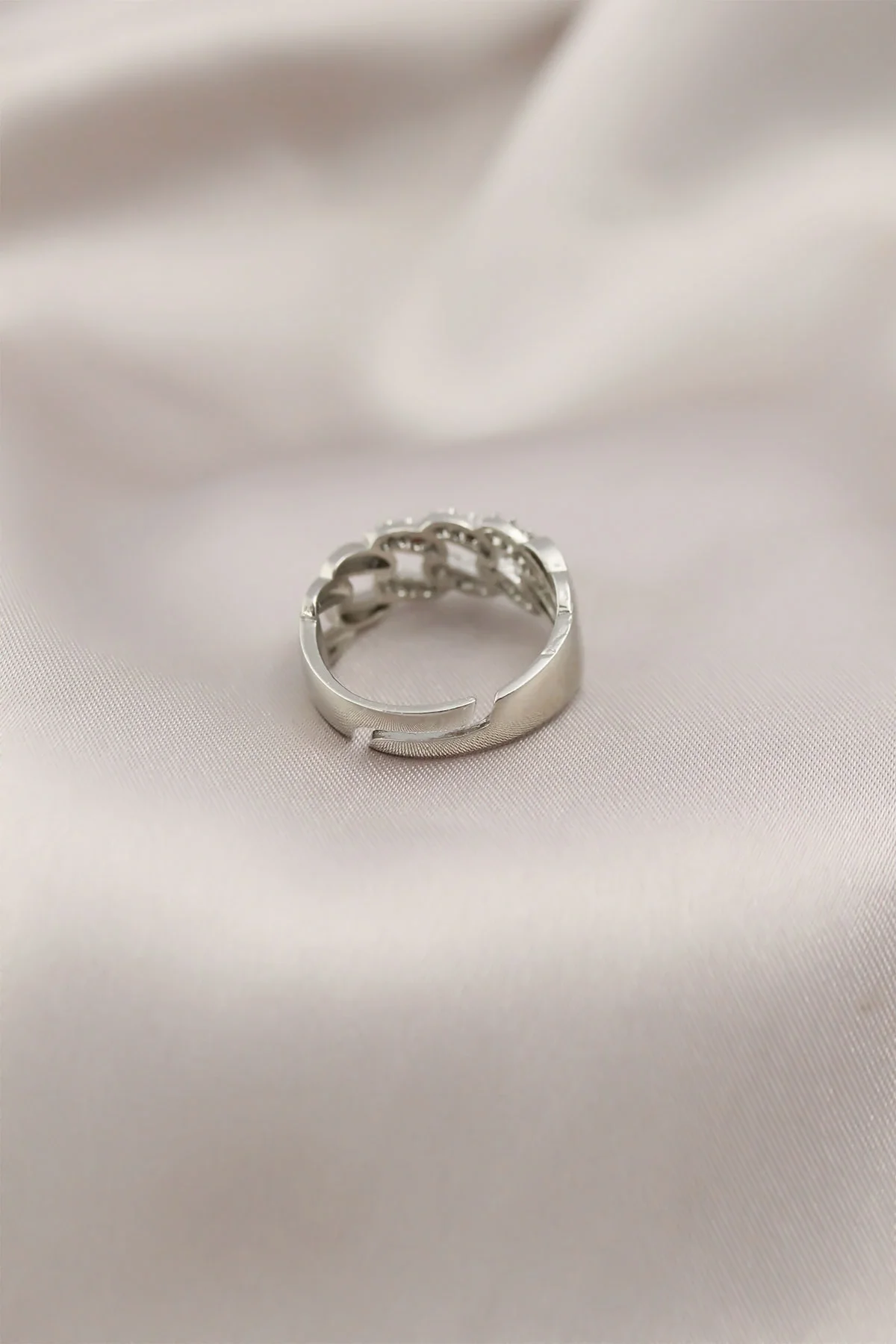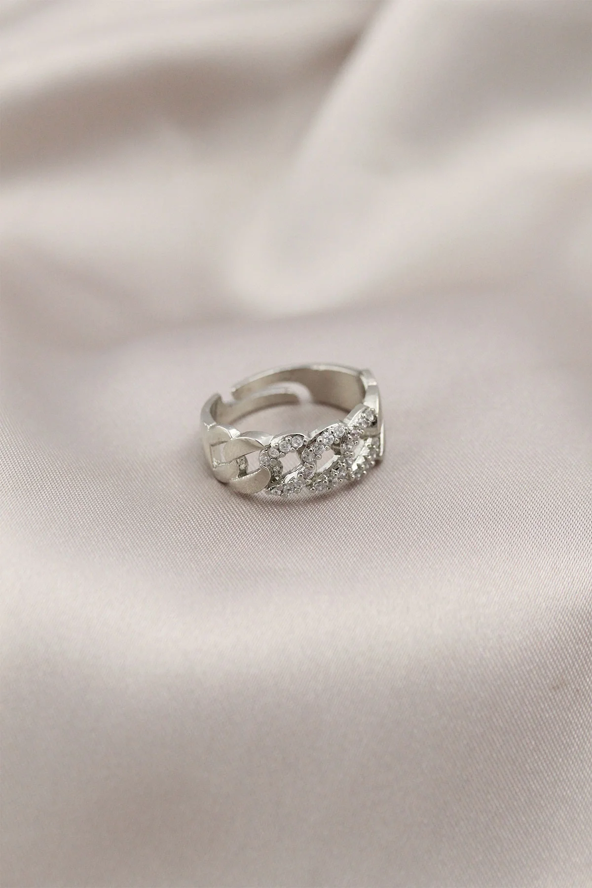Gümüş Renk Metal Zincir Model Taşlı Kadın Yüzük