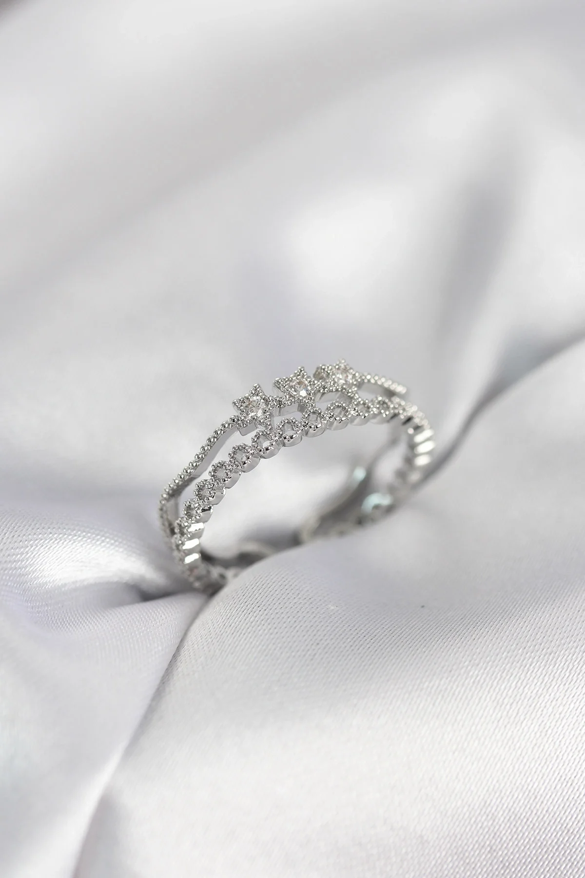 Gümüş Renk Minimal Yıldızlı Model Kadın Yüzük