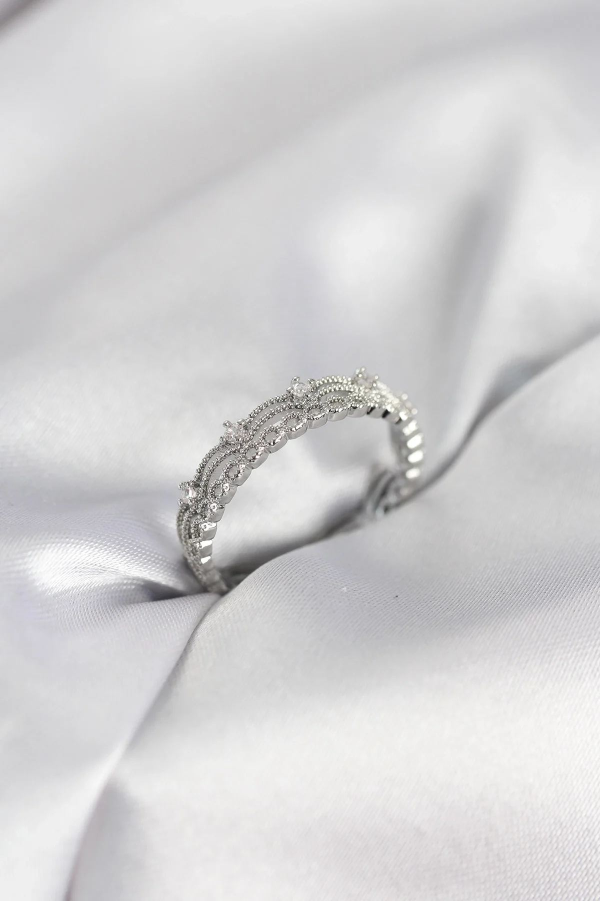 Gümüş Renk Motif Desenli Zirkon Taşlı Kadın Yüzük