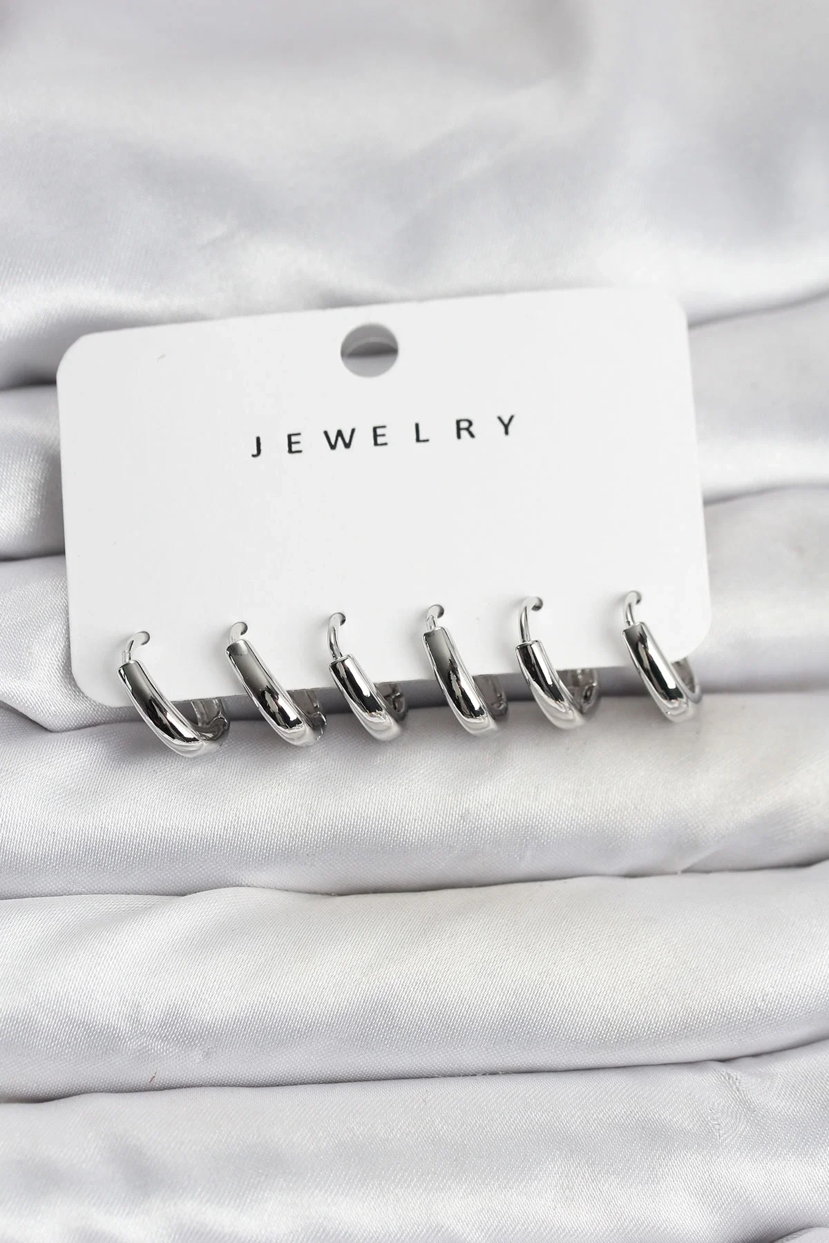 Gümüş Renk Pirinç Halka Kadın Küpe Seti