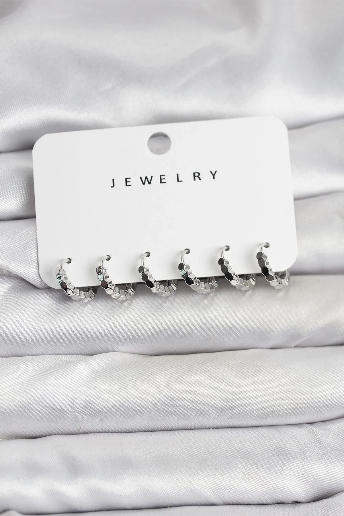 Gümüş Renk Pirinç Minimal Petek Detaylı Kadın Küpe Seti