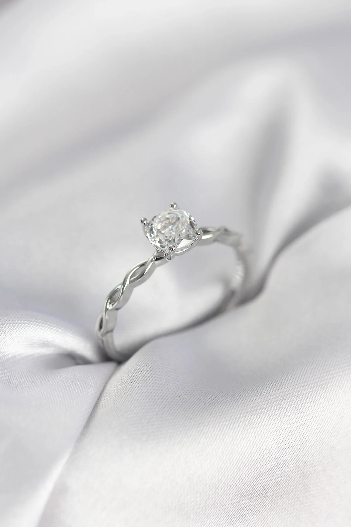 Gümüş Renk Sarmal Zincir Model Tek Taş Model Zirkon Taşlı Kadın Yüzük