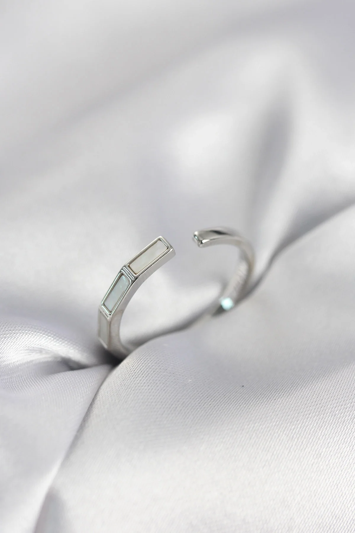 Gümüş Renk Sedefli Çubuk Model Kadın Yüzük