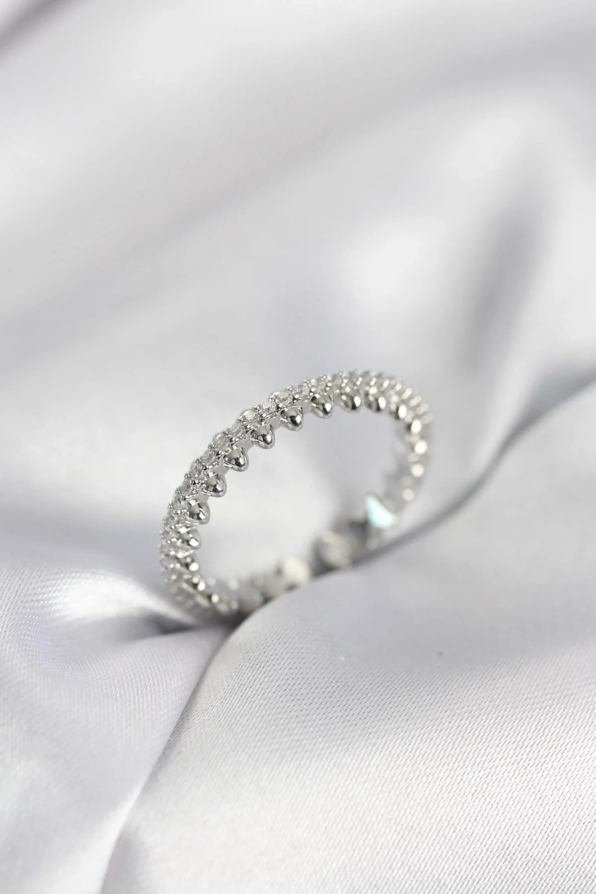 Gümüş Renk Sıralı Zirkon Taşlı Model Kadın Yüzük