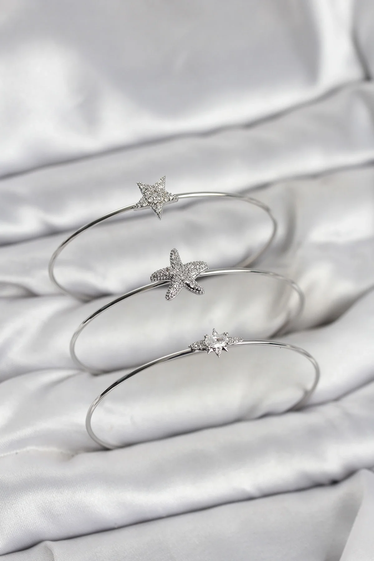 Gümüş Renk Zirkon Taşlı Deniz Yıldızı Model 3'lü Kadın Bileklik Kombini