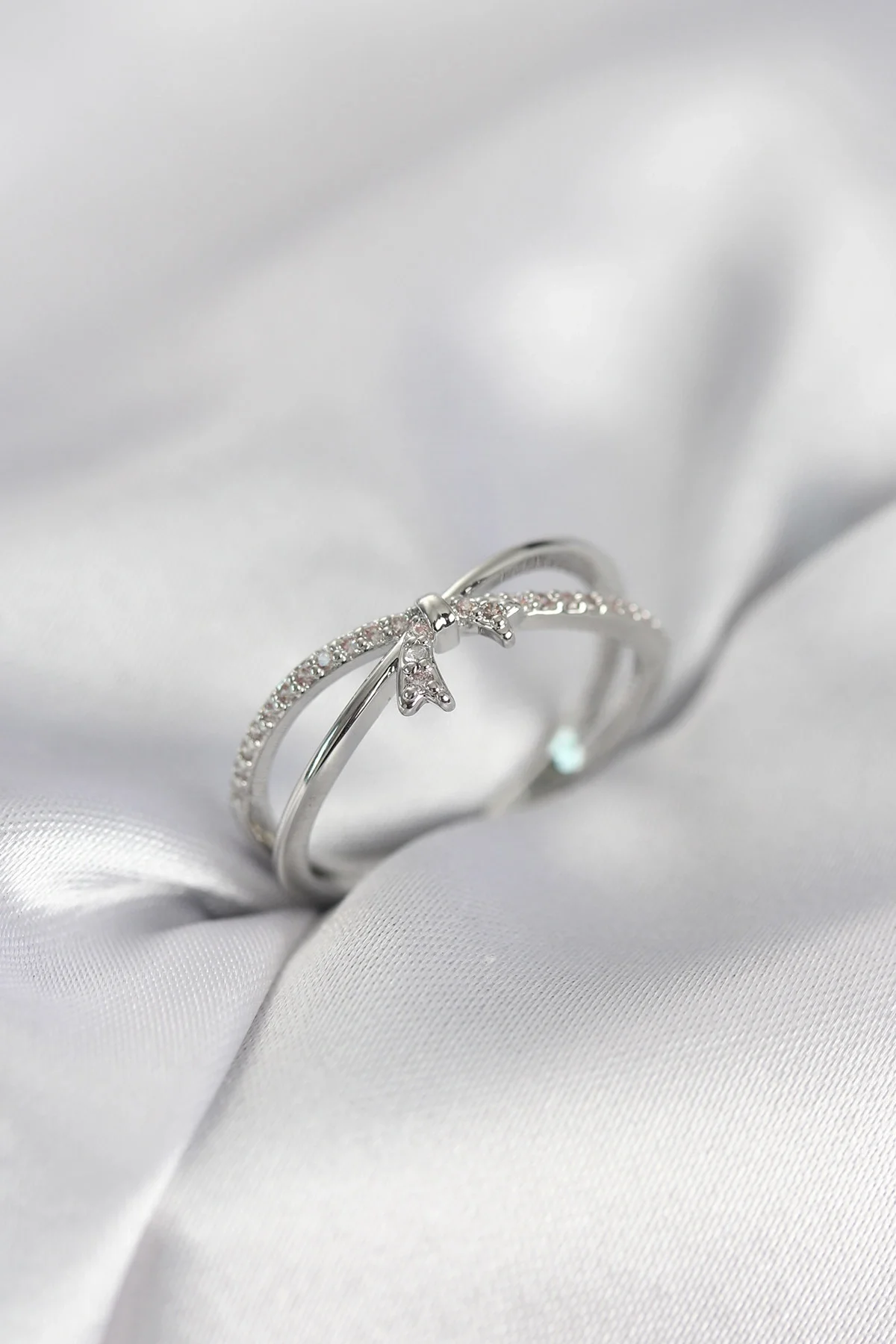 Gümüş Renk Zirkon Taşlı Fiyonk Model Kadın Yüzük