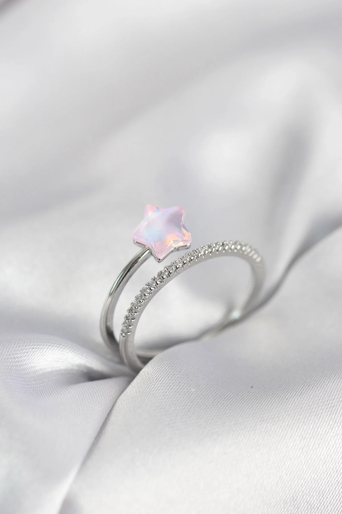 Gümüş Renk Zirkon Taşlı Pembe Halley Model Kadın Yüzük