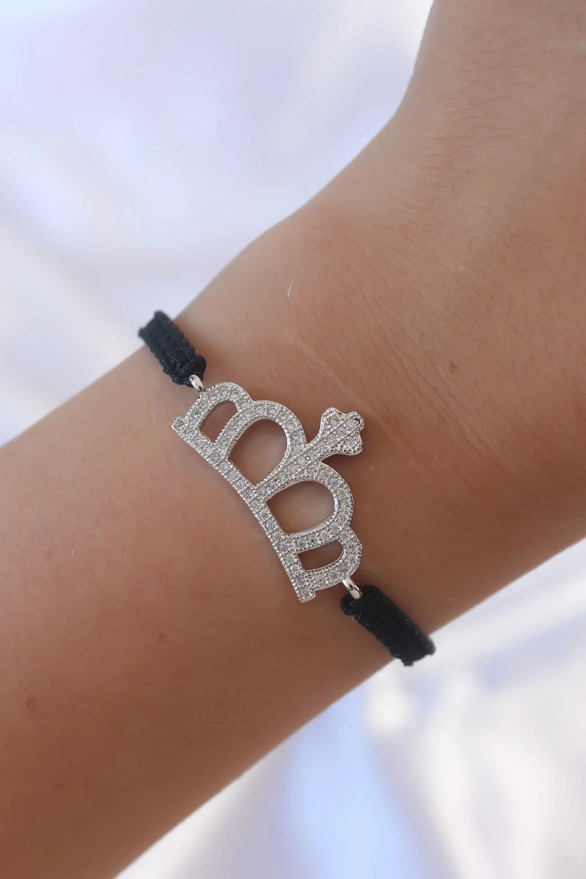 Gümüş Renk Zirkon Taşlı Taç Figür Makrome Bileklik