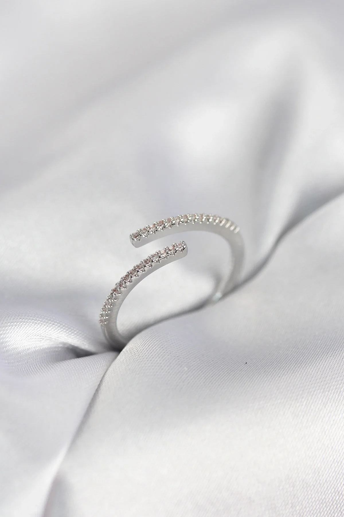 Gümüş Renk Zirkon Taşlı Yılan Tarz Kadın Yüzük