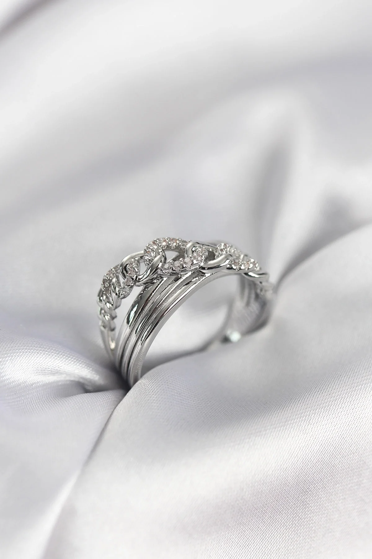 Gümüş Renk Zirkon Taşlı Zincir Model Kadın Yüzük