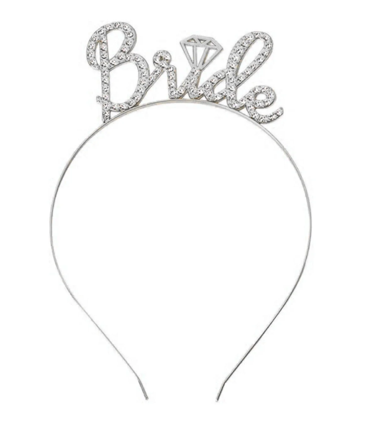 Gümüş Renkli Taşlı “Bride” Gelin Tacı – El Yazısı Yazı Tipiyle
