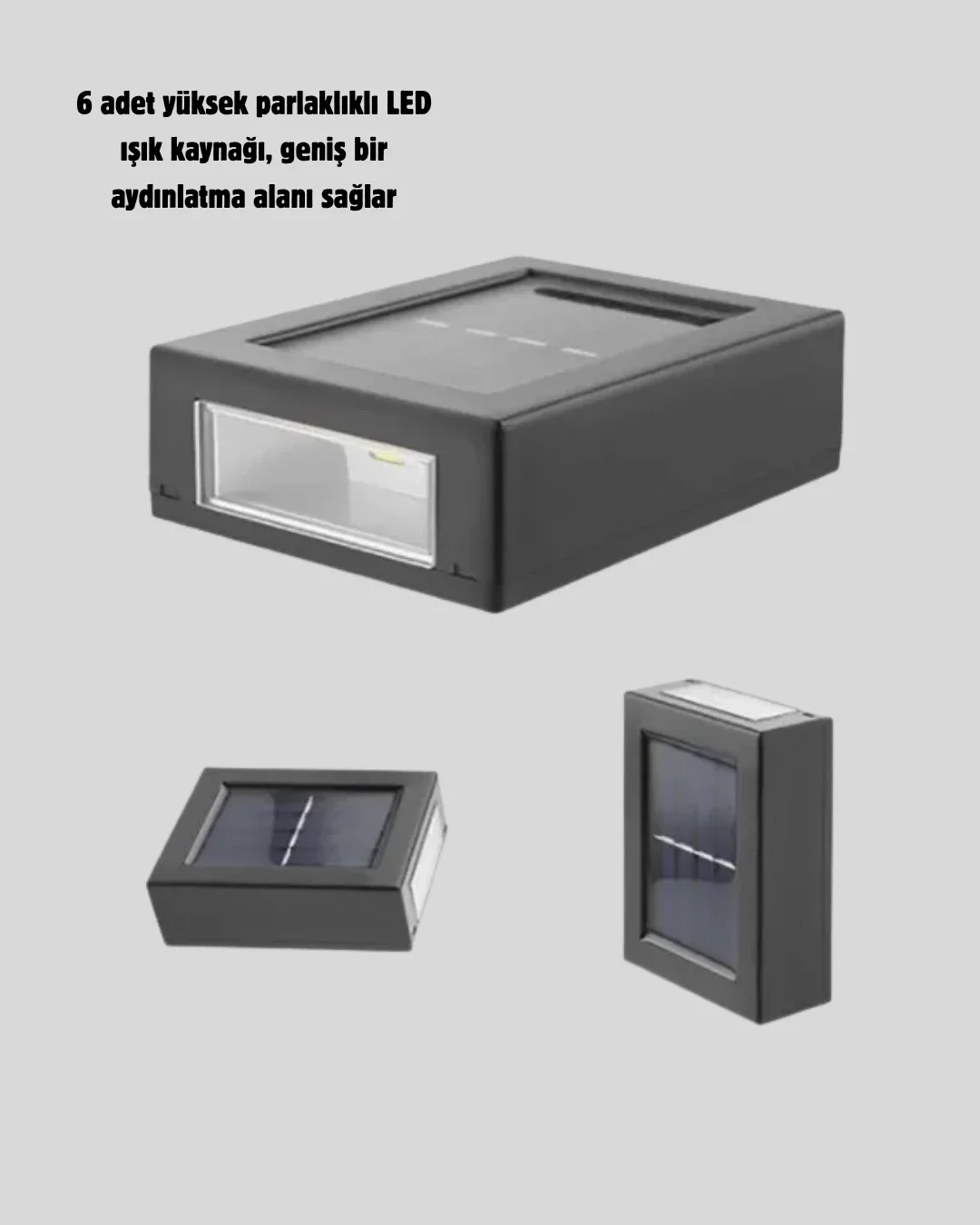 Solar Güçlü 6 LED Dış Mekan Lambası – Otomatik Aç/Kapa Işık Sensörlü Aydınlatma