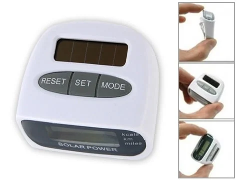 Güneş Enerjili Adımsayar ve Kalori Ölçer enerjisini güneşten aldığı için pil ihtiyacı olmamaktadır. Geniş LCD dijital ekran sayesinde belinizdeki koşma ve yürüme hareketlerini sayarak ne kadar kalori yaktığınızı gösterir. Ayrıca saydığı adımı hem mil hem de km olarak da gösterir.