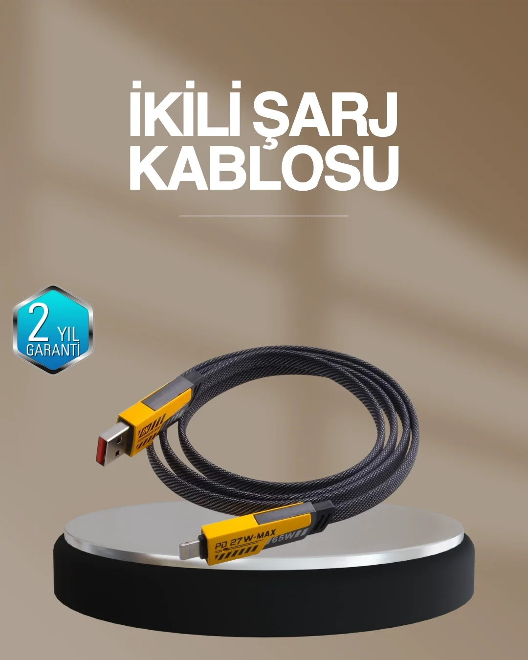 Hızlı Şarj Destekli 65W Örgülü USB-C ve USB-A Çoklu Şarj Kablosu