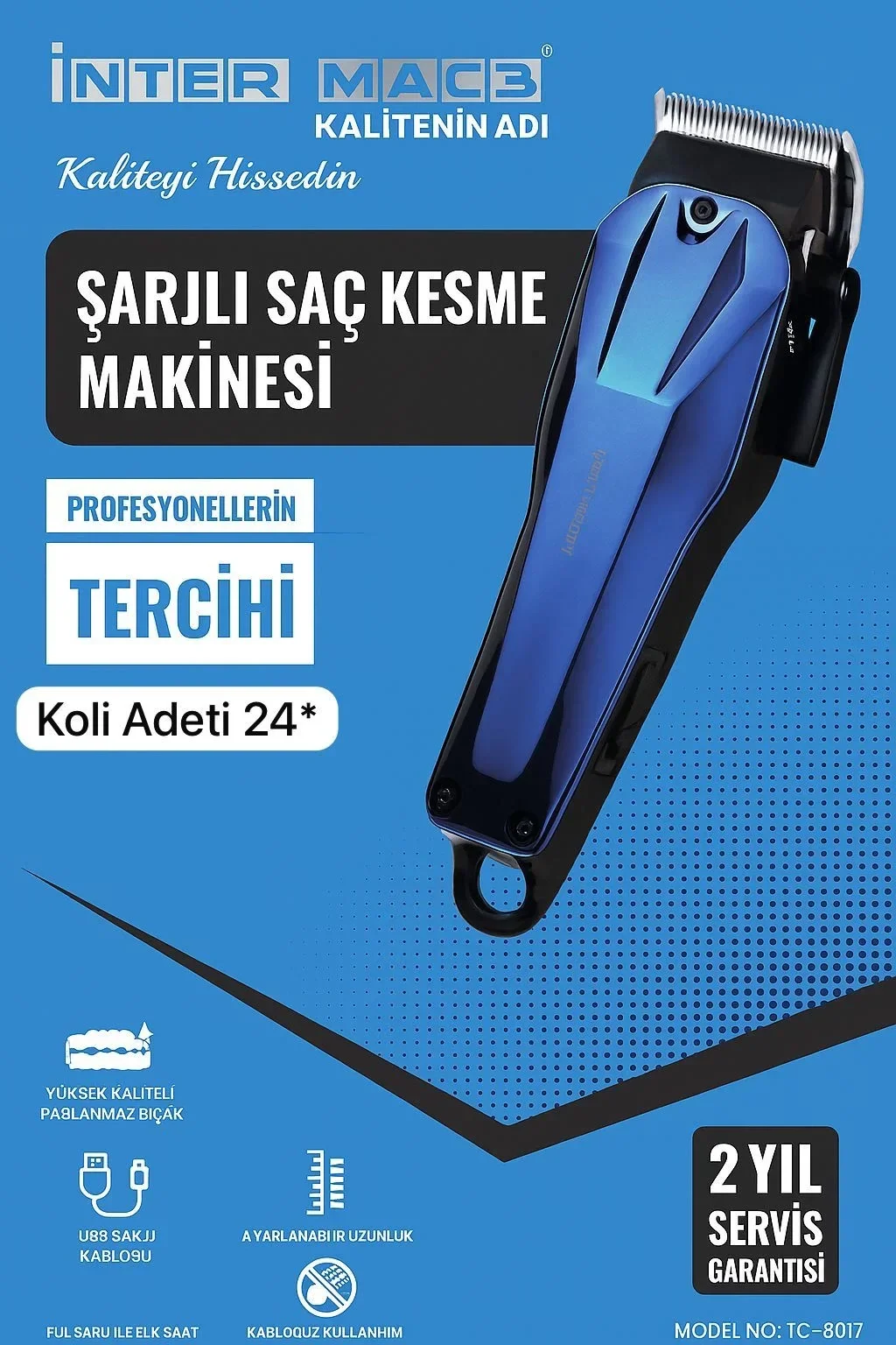 inter Mac3 Şarjlı Saç Kesme Makinesi TC-8017 (5047)