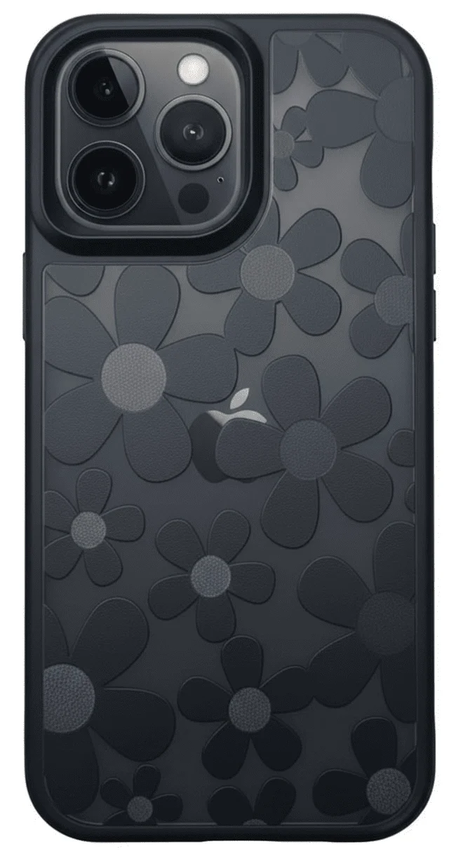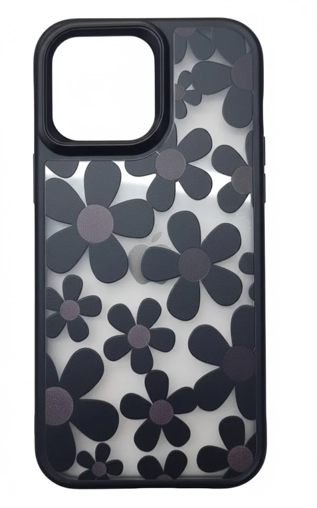 16 Pro Max Çiçekli Kılıf Bağlama Aparatlı Siyah