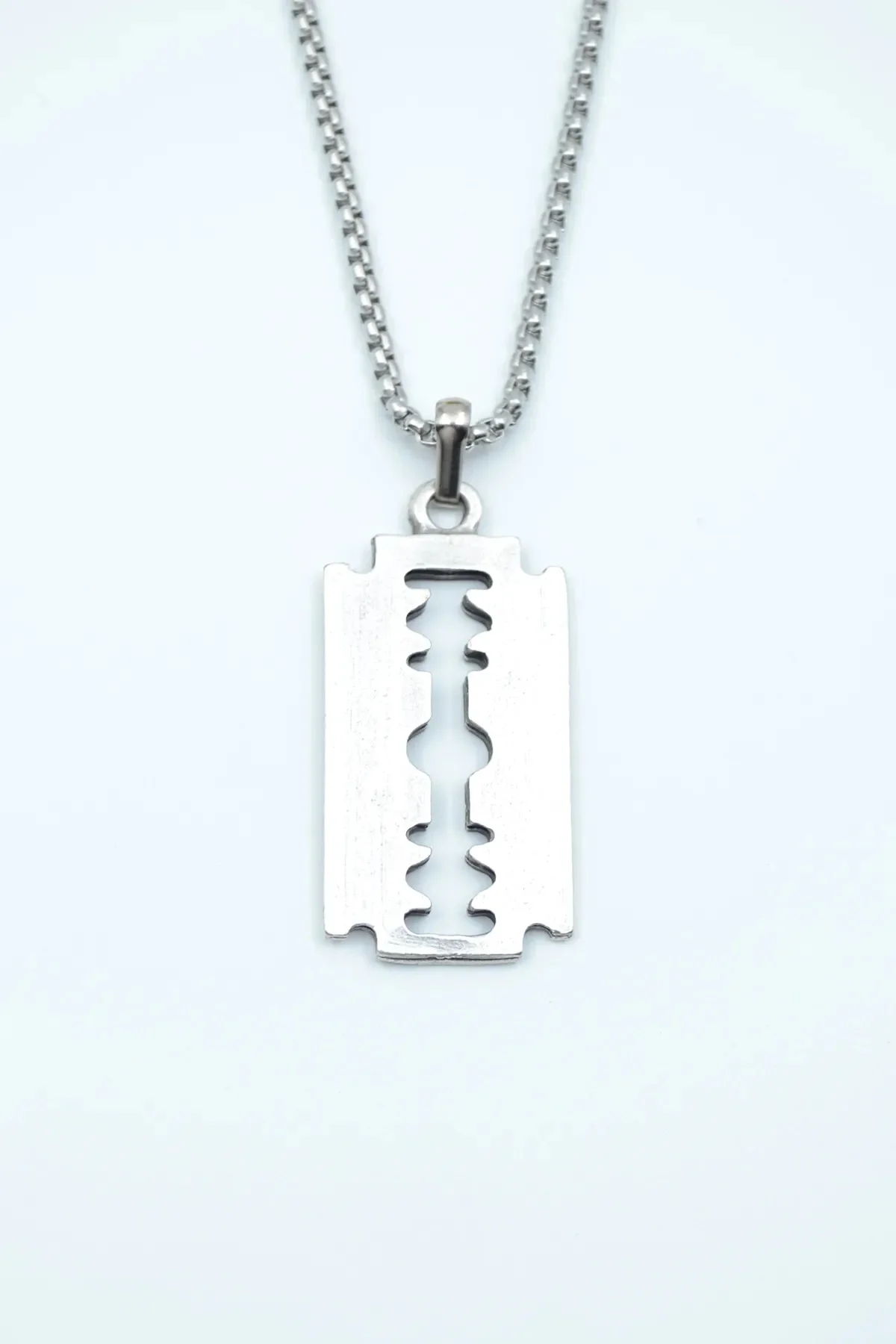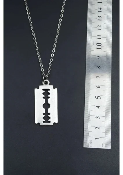 Jilet Çelik Kolye - Jilet Model Paslanmaz Gümüş Renk Çelik Kolye