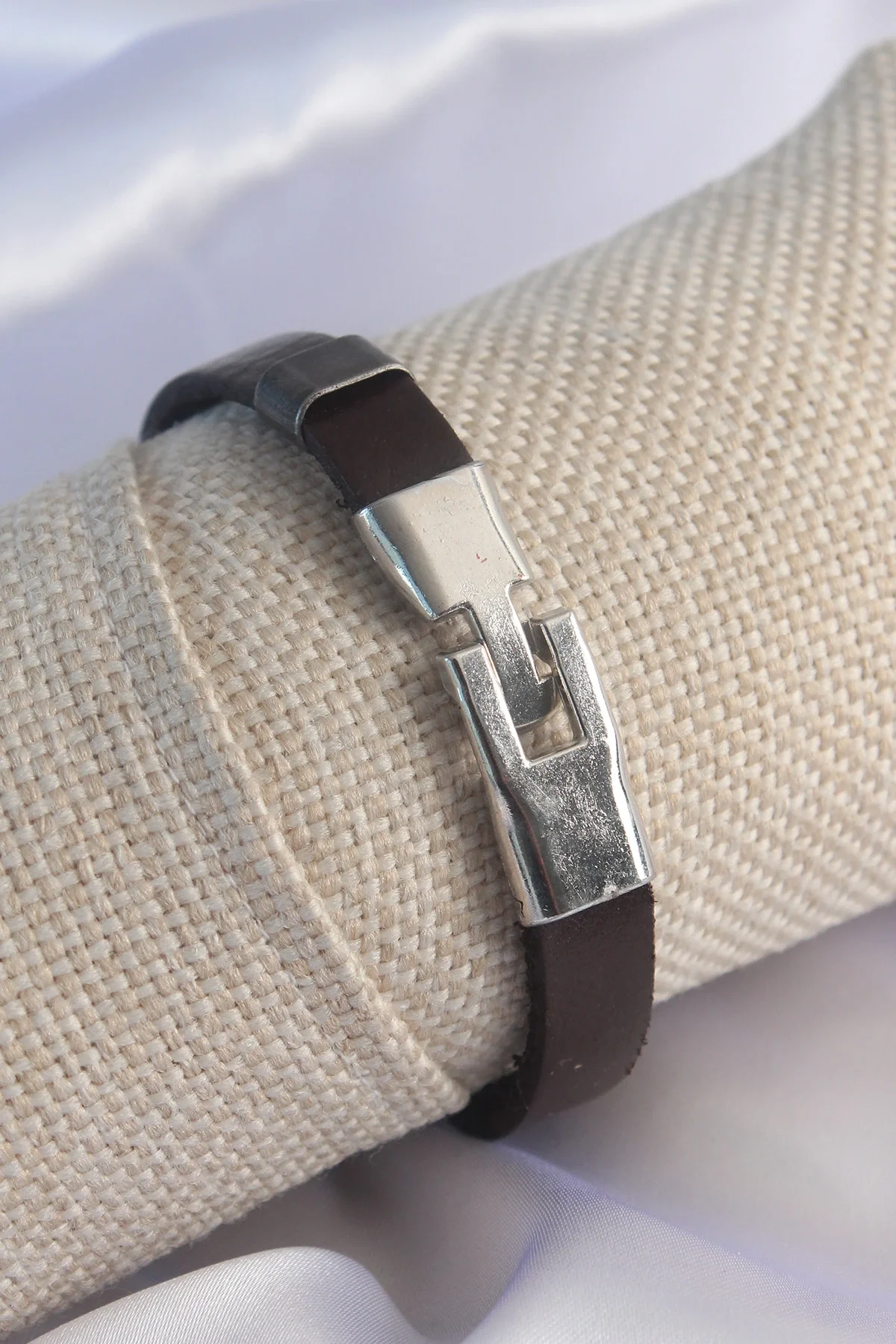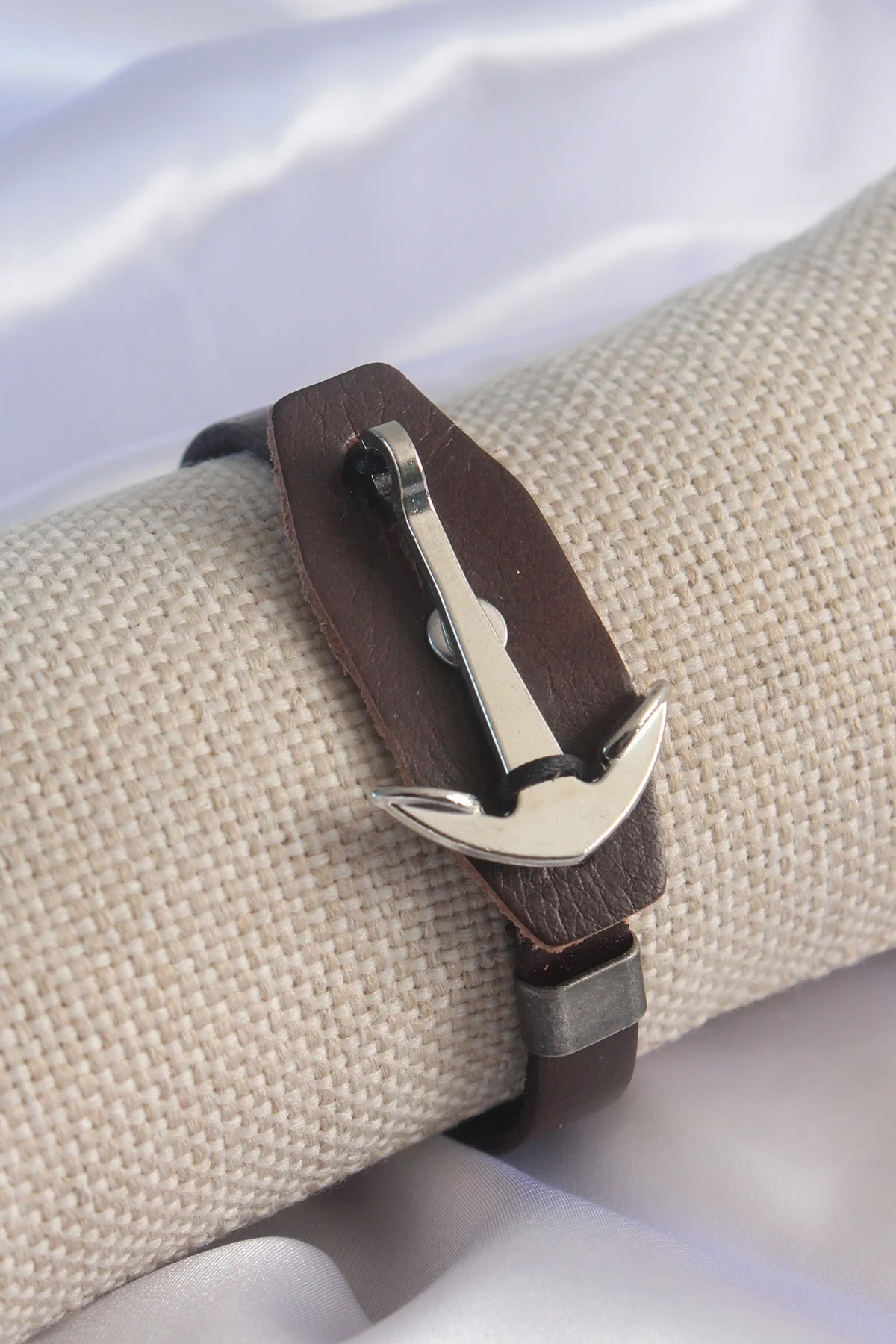 Kahverengi Deri Model Gümüş Renk Çapa Figür Erkek Bileklik