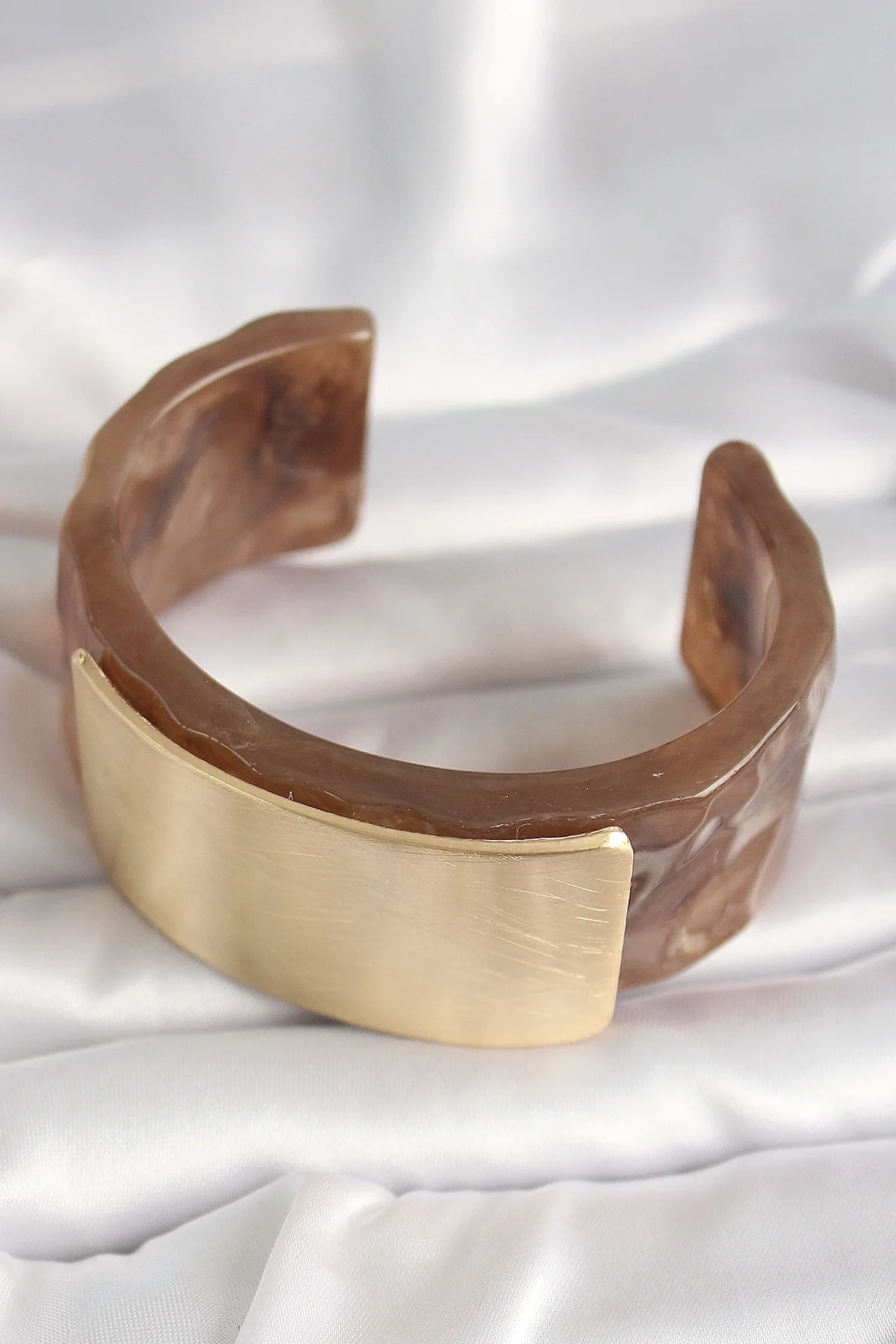 Kahverengi Mermer Desen Akrilik Platik Gold Dikdörtgen Plaka Model Vintage Kadın Bilezik