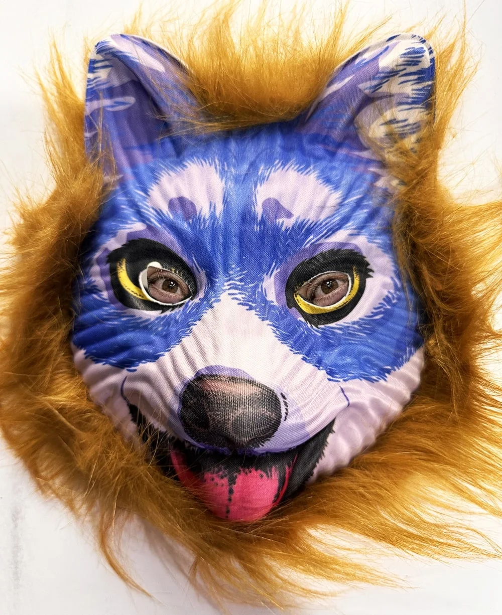 Kahverengi Saçlı Mavi Yüz Sevimli Köpek Maskesi 30 No