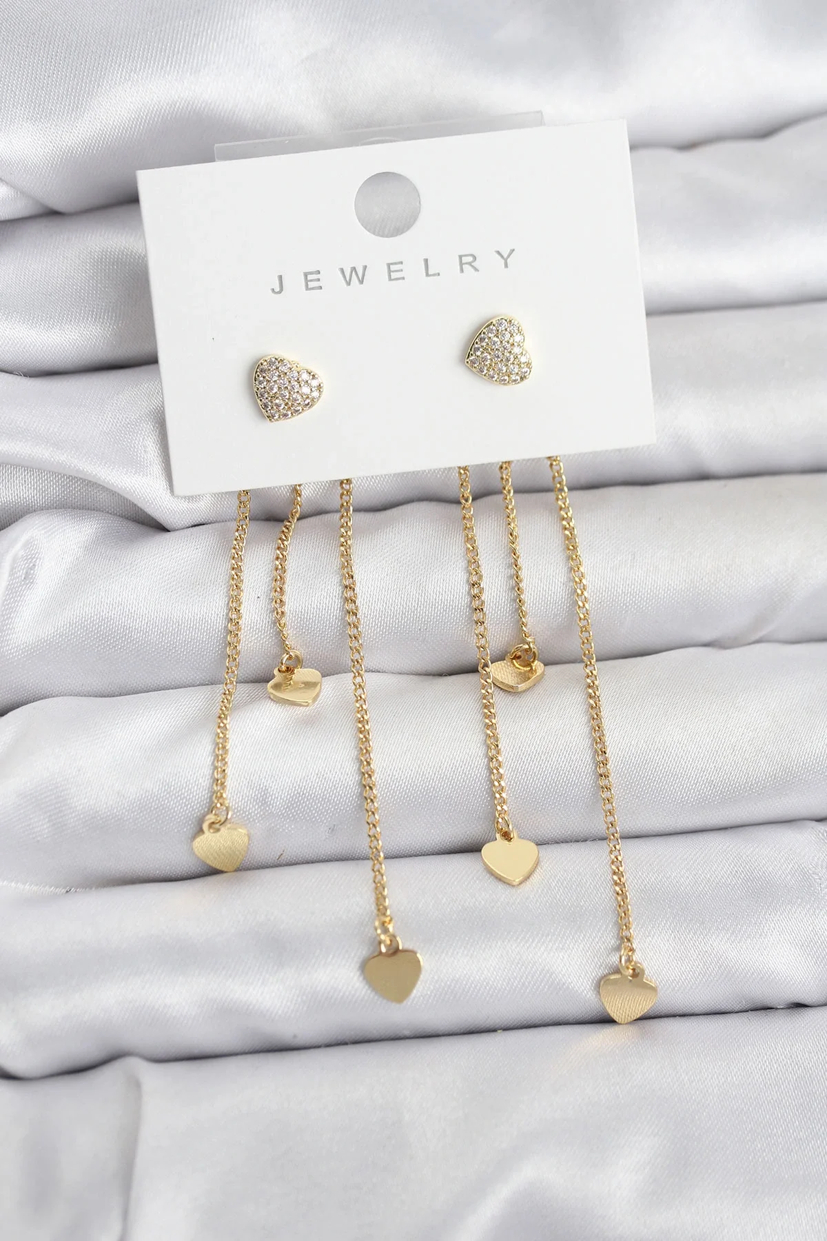 Kalp Model Gold Renk Pirinç Sallantılı Kadın Küpe