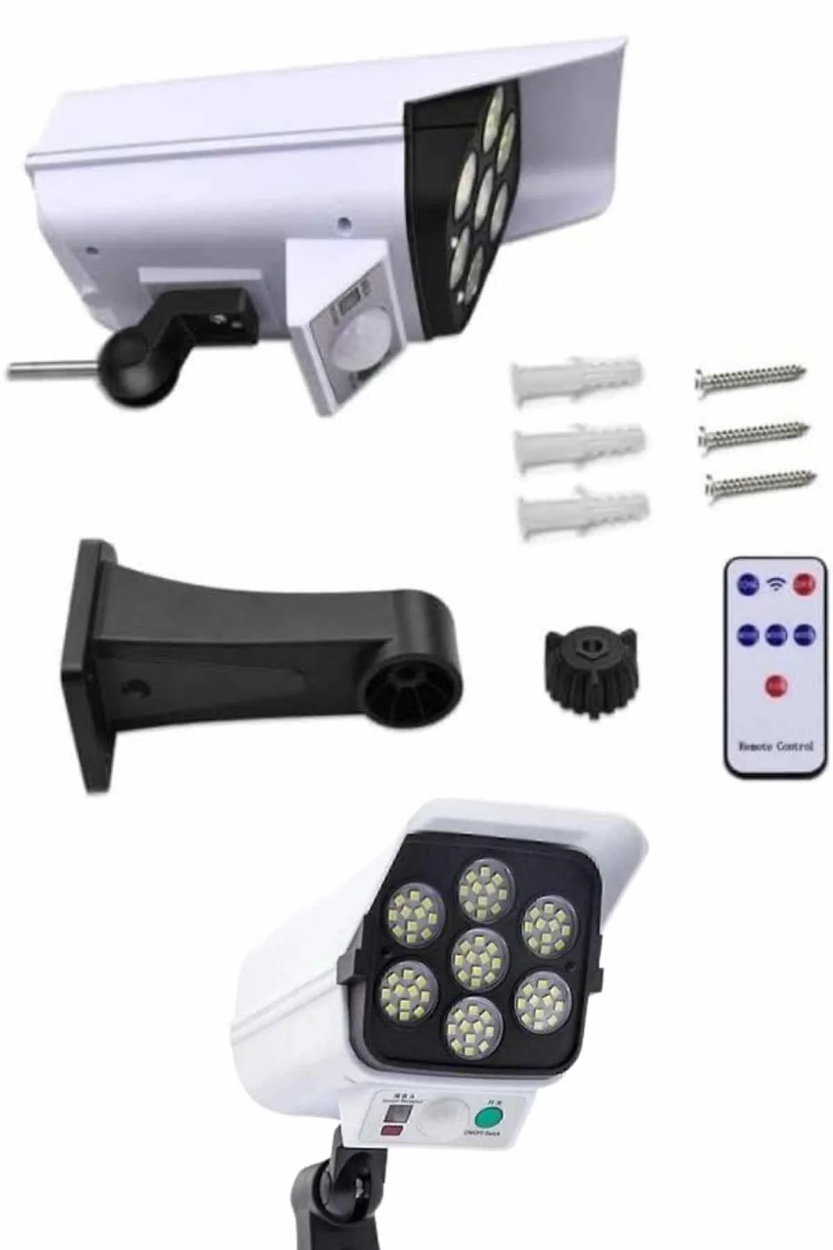 Güneş Enerjili Kamera Görünümlü Hareket Sensörlü LED Duvar Lambası Uzaktan Kumandalı