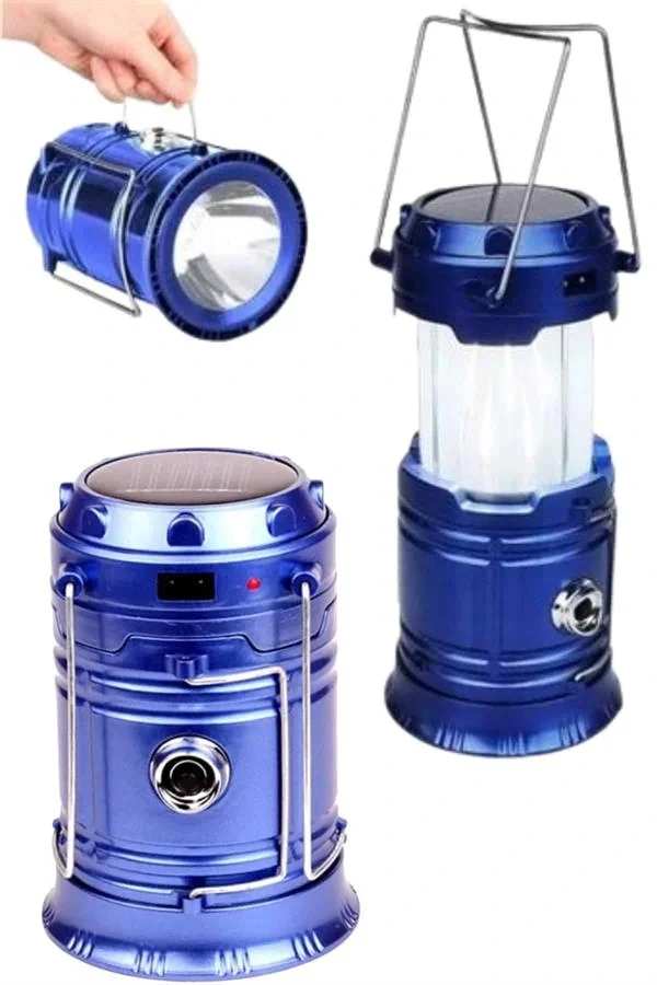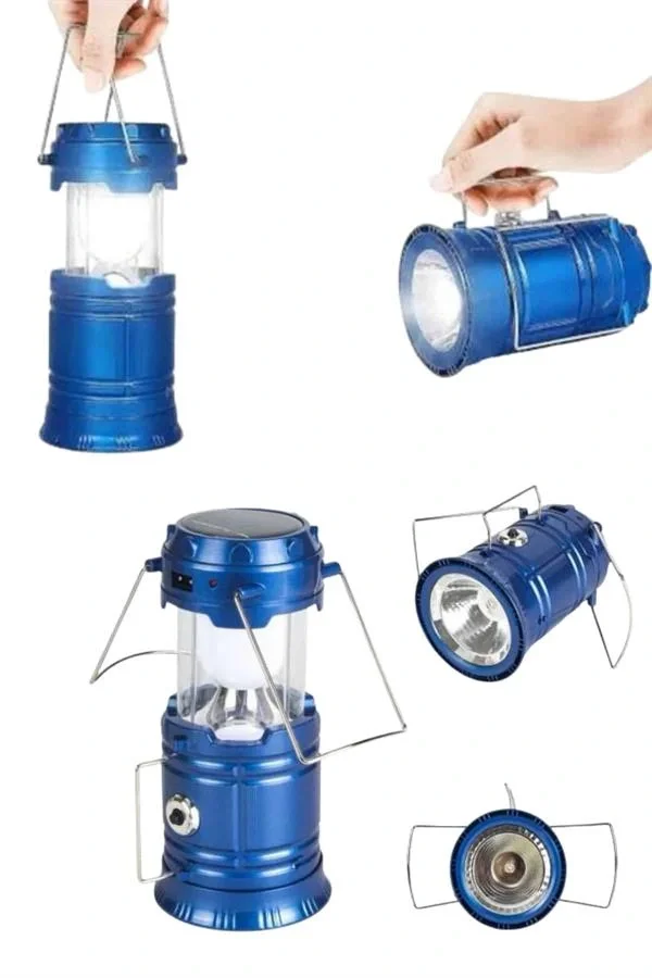 Şarj Edilebilir Güneş Enerjili Kızaklı Kamp Feneri – USB Çıkışlı, Katlanabilir, Dayanıklı ve Çok Fonksiyonlu