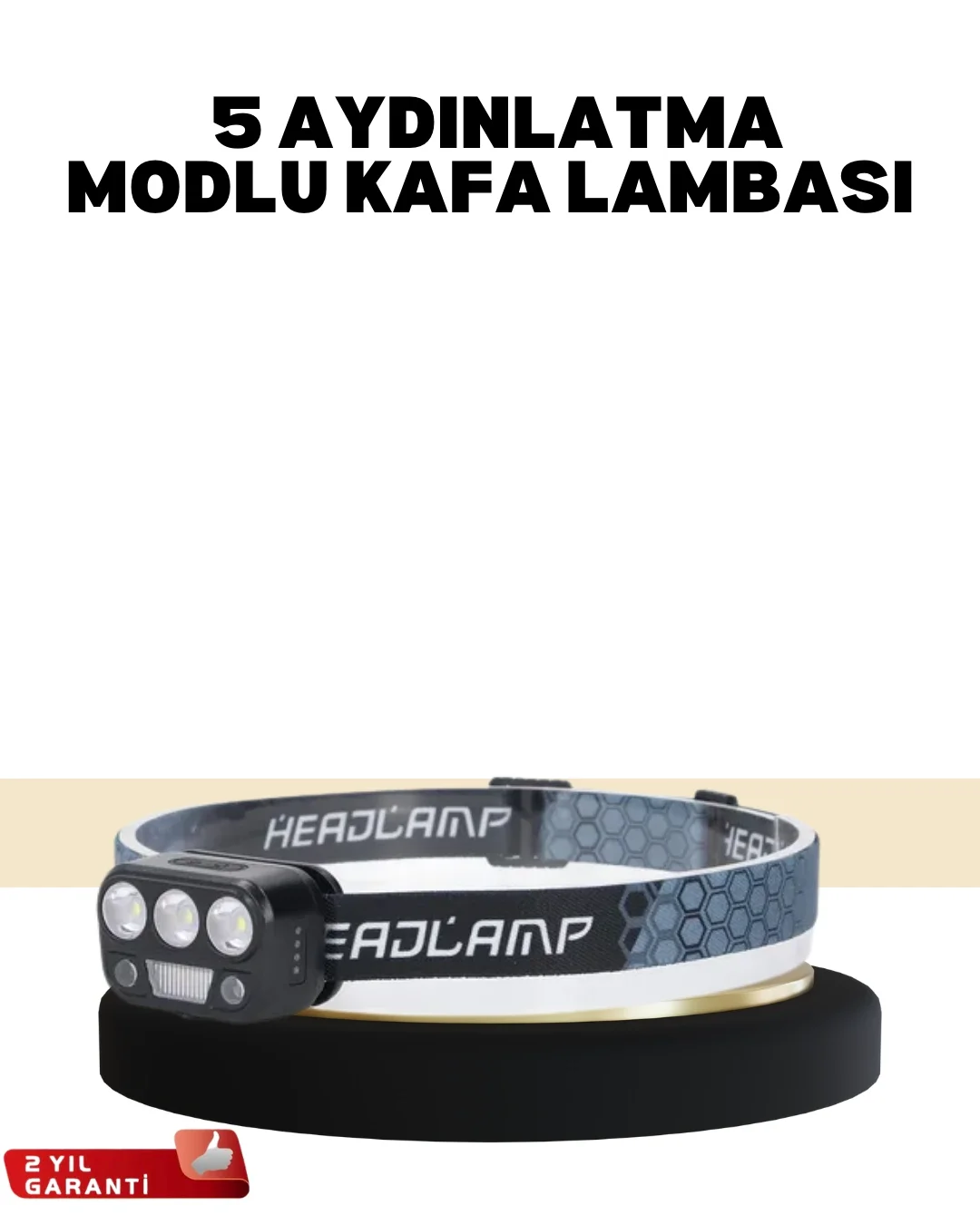 El Hareket Sensörlü LED Kafa Feneri 5 Mod Ayarlanabilir