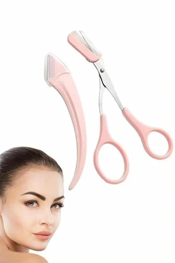 2'li Kaş Bakım Seti Taraklı Kaş Makası Ve Kaş Usturası Kaş Şekillendirici