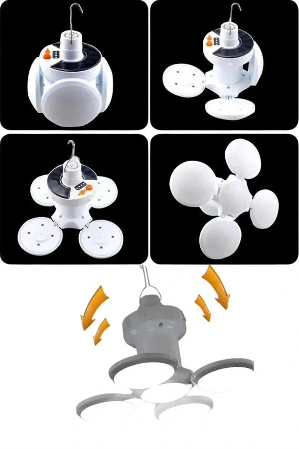Katlanabilir Askılı Kamp Lambası 5 Kanatlı Pratik Güneş Enerjili