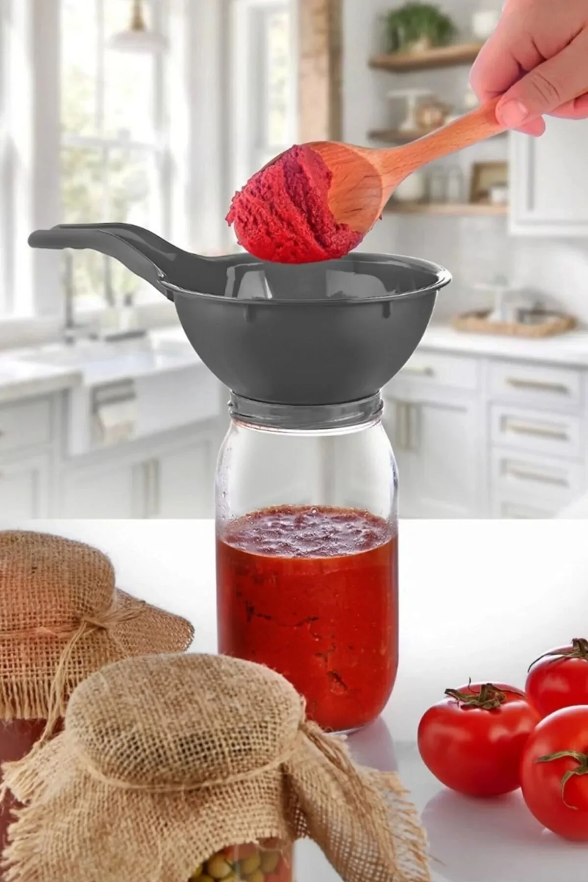 Reçel, marmelat, un, çay, şeker gibi kavanozlarda sakladığınız gıdalarınızın etrafa dökülmeden temiz ve hızlı bir şekilde kavanoza aktarılmasını sağlar