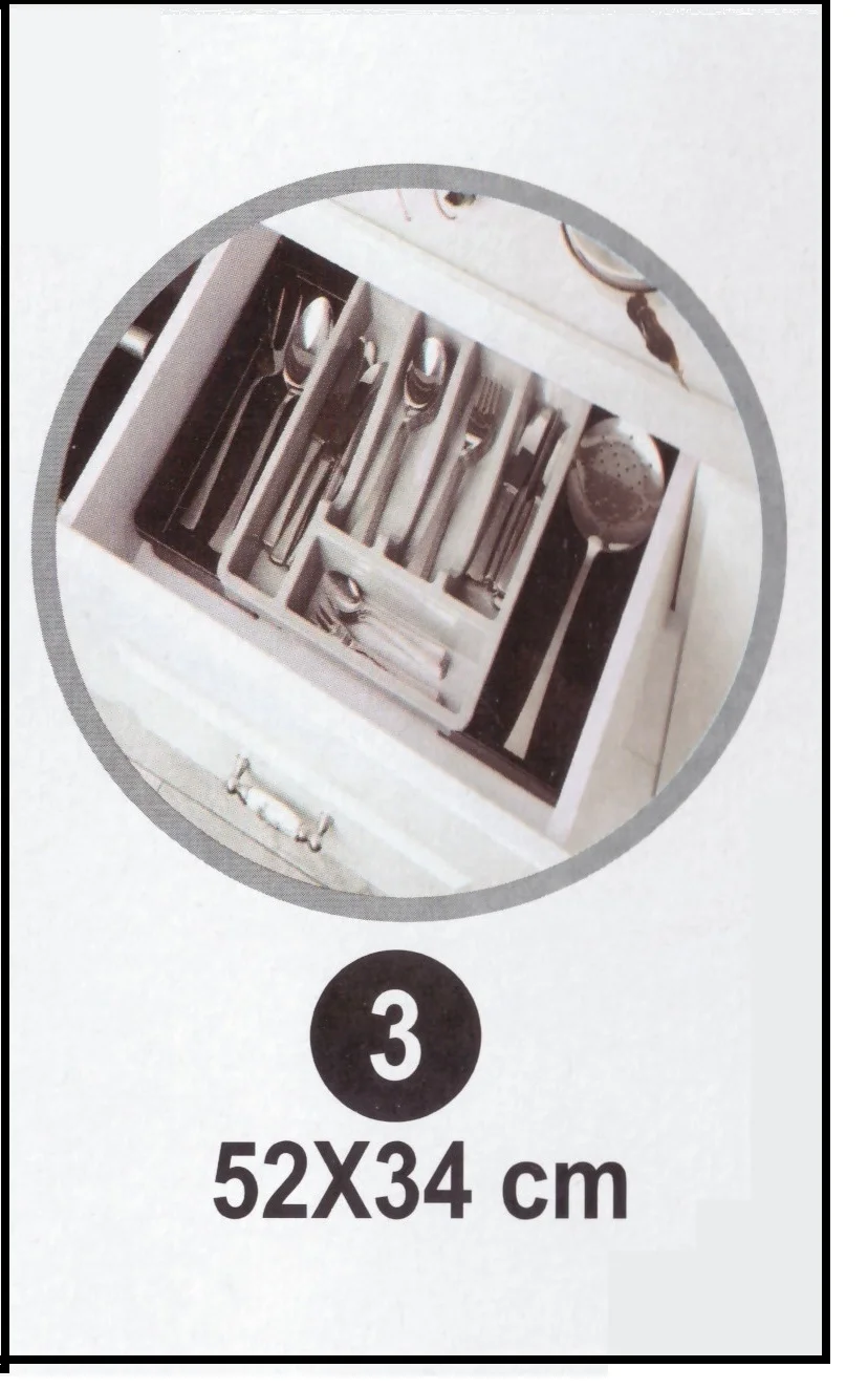 Kayar Kaşıklık Organizeri - 3 Aşamalı Sürgülü - Sağ Sol Açılır ; Kayar kaşıklık organizeri standart boyuttaki haznelere sığmayan masa, yemek kaşığı vb. gibi mutfak gereçlerinin düzenli bir şekilde çekmece içlerinde istiflenmesi için dizayn edilmiştir