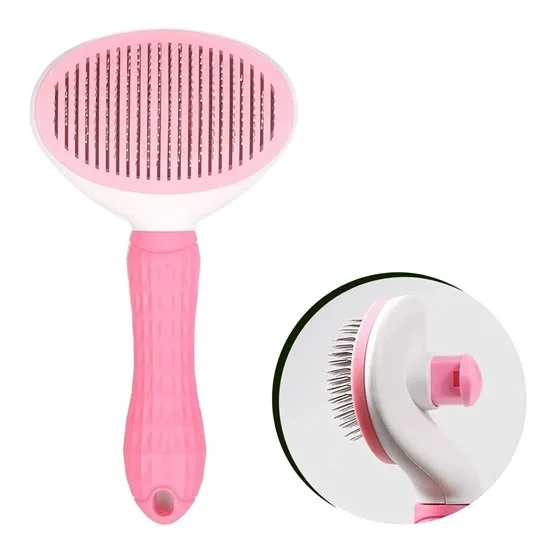 Kedi Köpek Tüy Toplayıcı Kendini Temizleyebilen Ergonomik Saplı Kullanımı Rahat Kaymaz Evcil Hayvan Tarağı Pembe