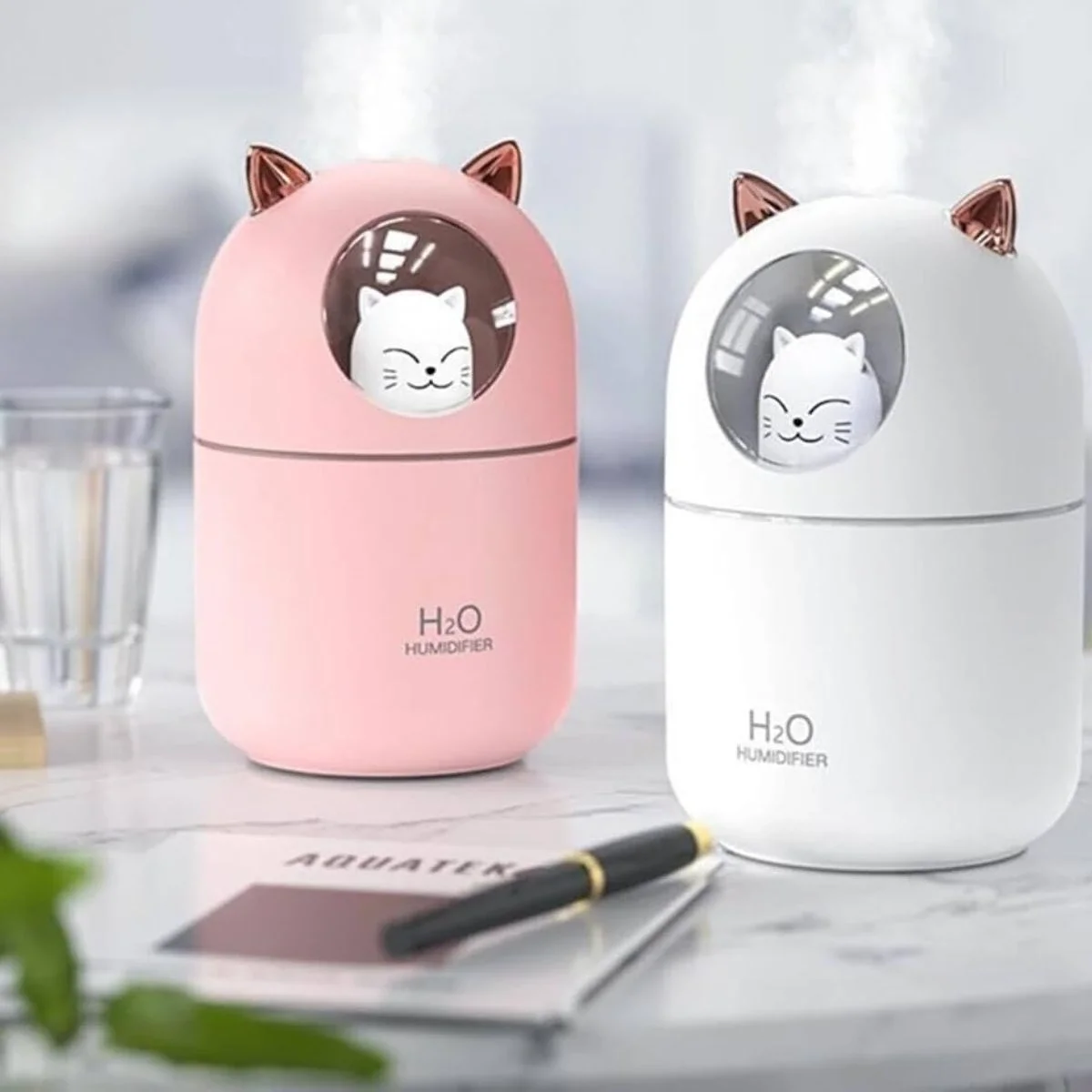 Kedicik Figürlü Hava Nemlendirici – Ultrasonik Soğuk Buhar Makinesi, LED Işıklı Masaüstü Oda Nemlendirici