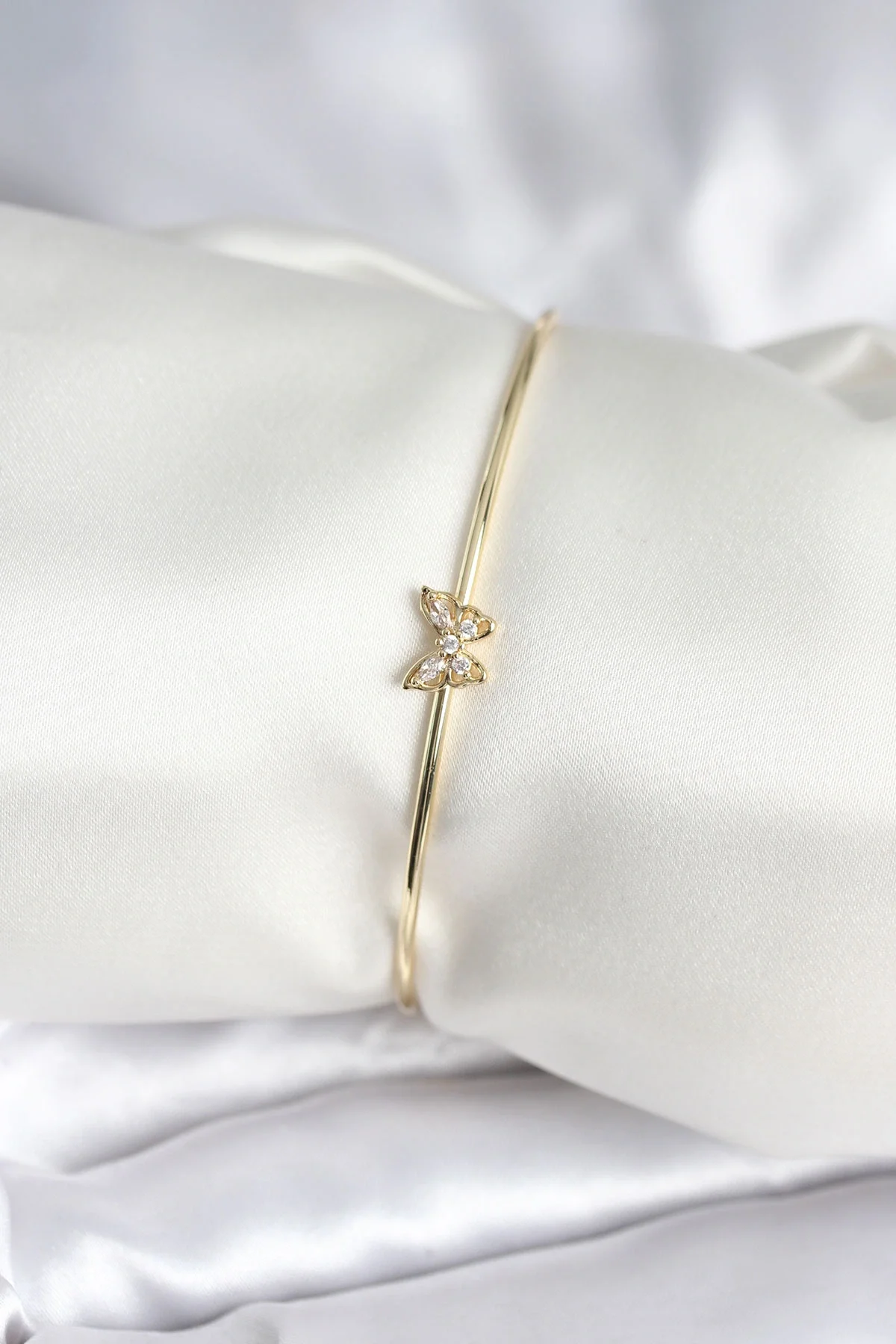 Kelebek Figürlü Zirkon Taşlı Gold Renk Pirinç Kadın Bileklik