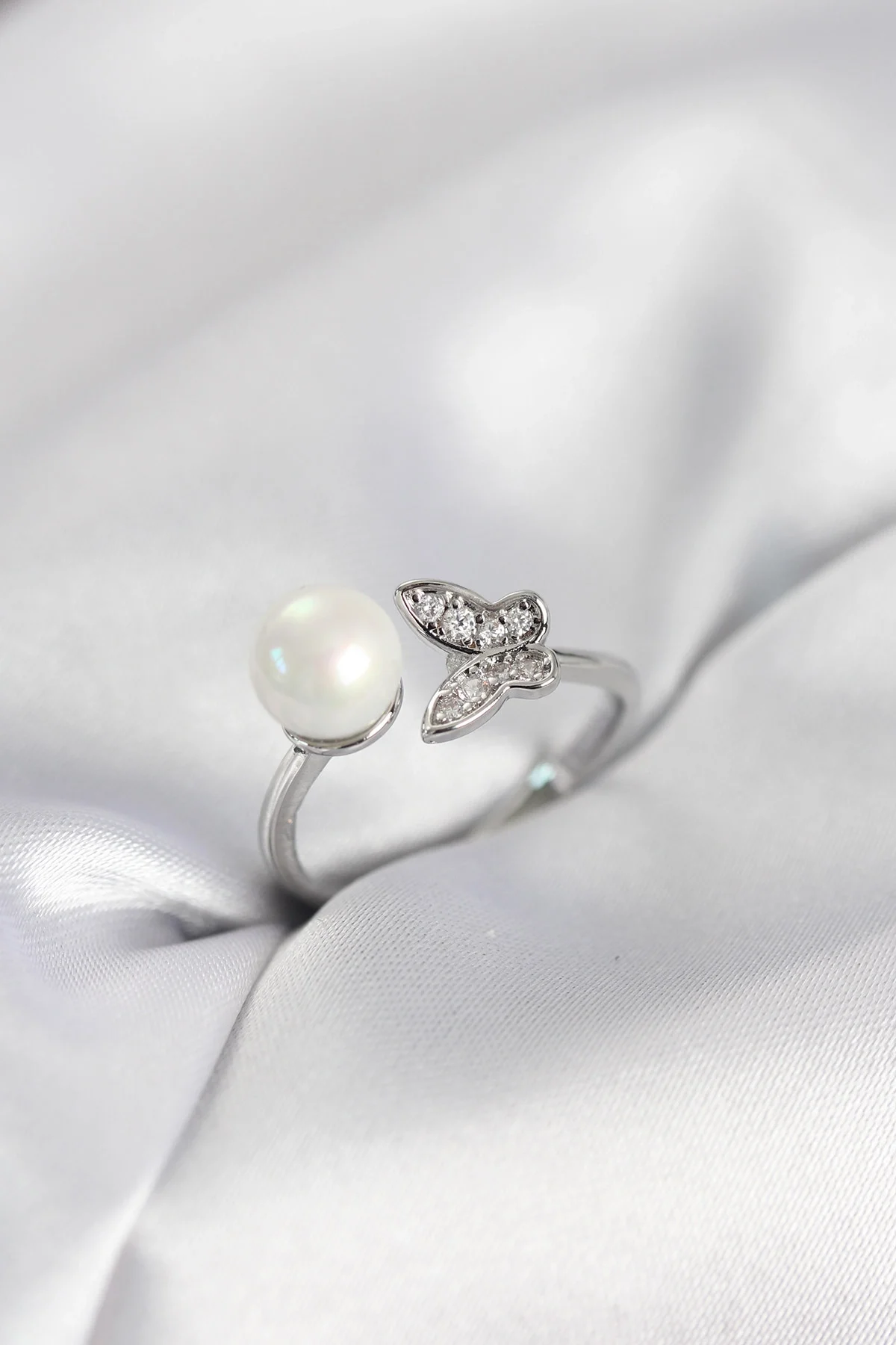 Kelebek İncili Model Gümüş Renk Zirkon Taşlı Kadın Yüzük