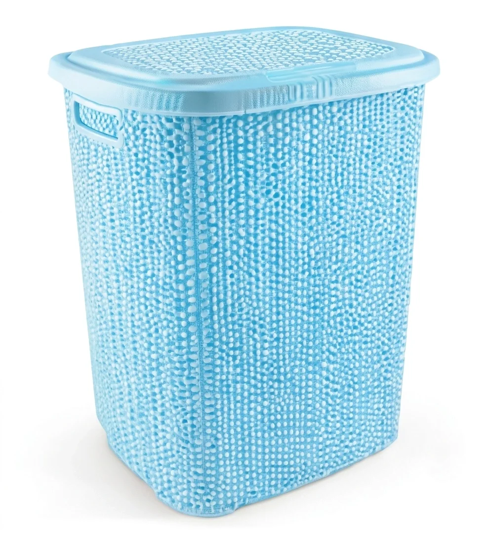 Kirli Çamaşır Sepeti Kapaklı 65 LT Örgü Desenli Plastik Çamaşır Sepeti, geniş iç hacmi ve şık örgü desenli tasarımı sayesinde banyolarınızda hem düzen hem de estetik görünüm sağlar. 65 litre kapasitesi ile günlük çamaşır birikimini rahatlıkla toplar ve kapaklı yapısı sayesinde kötü görüntü ve kokuların dışarı yayılmasını önlemeye yardımcı olur.