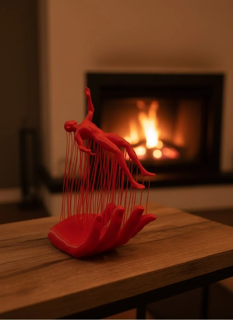 Kırmızı El ve İnsan Figürü Dekoratif Biblo Salon Ofis Raf ve Konsol Üstü İçin 12x18 cm