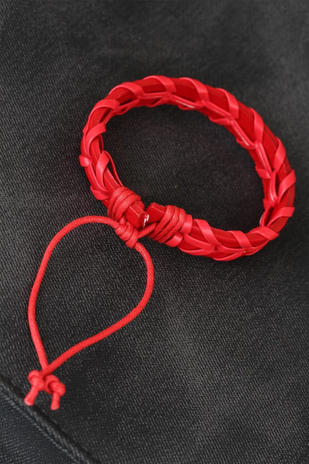 Şıklığa Kırmızı Örgü Deri Erkek Bileklik ile imzanızı atacaksınız.
