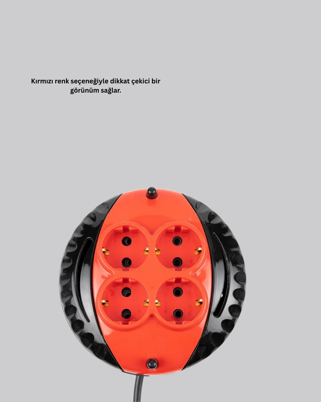 Kırmızı Renk 5 Metre 4’lü Kablolu Priz Makarası