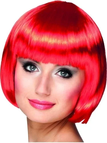 Kırmızı Renk Parti Peruğu Küt Saç