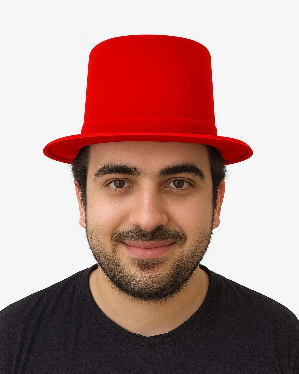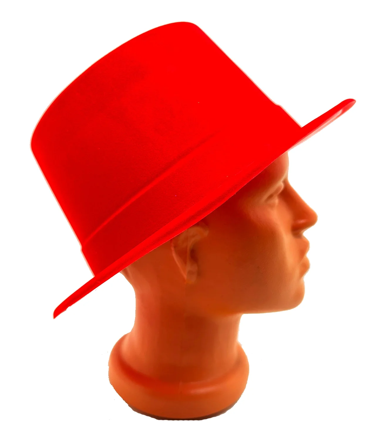 Kırmızı Renk Plastik Nubuk Kadife Kaplama Fötr Şapka