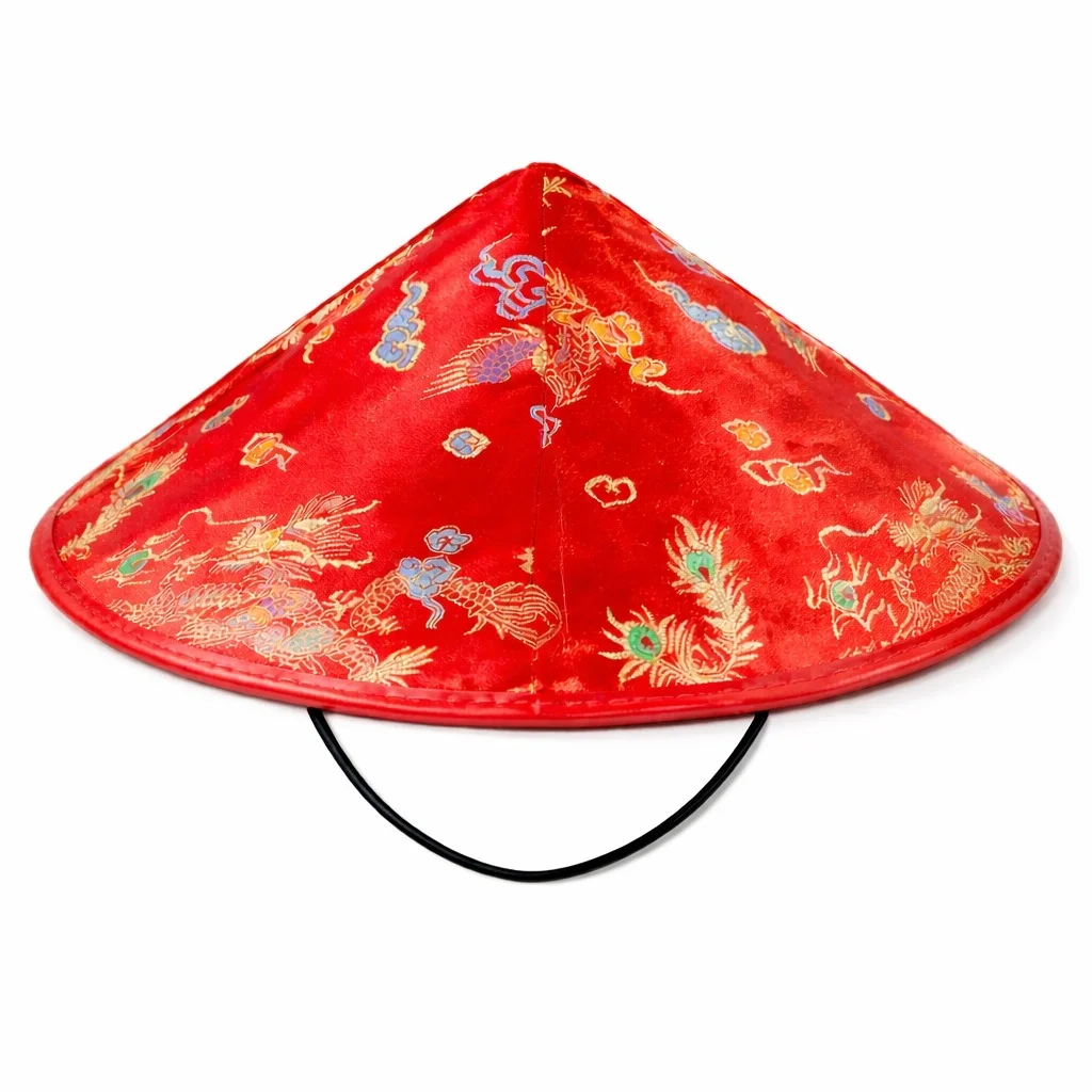 Göz alıcı tasarımıyla dikkat çeken Kırmızı Saten Çin Desenli Dragon İşlemeli Şapka, temalı etkinlikler ve kostüm kombinleri için güçlü bir tamamlayıcı aksesuardır. Parlak saten kaplaması sayesinde sahne ışığında ve fotoğraflarda etkileyici bir görünüm sunar.