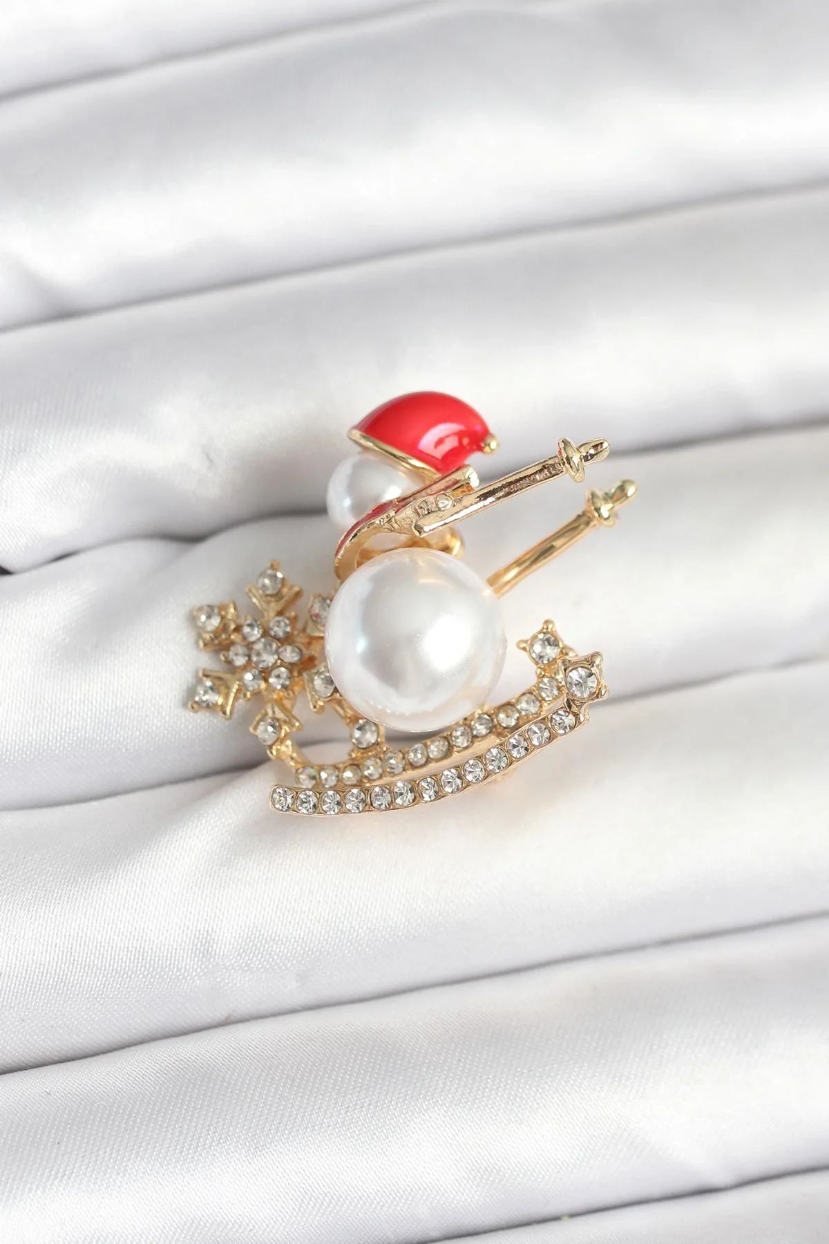 Kızaklı Kardan Adam Model Yılbaşı Temalı Broş