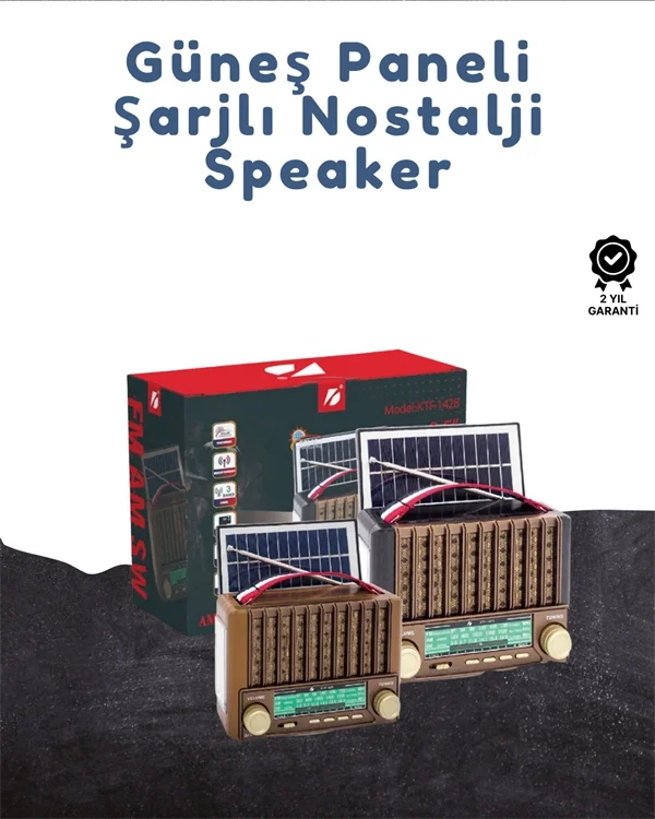 KTF-1428 Taşınabilir Güneş Enerjili Bluetooth Radyo Hoparlör – Şarjlı, Radyo, MP3, AUX Girişli