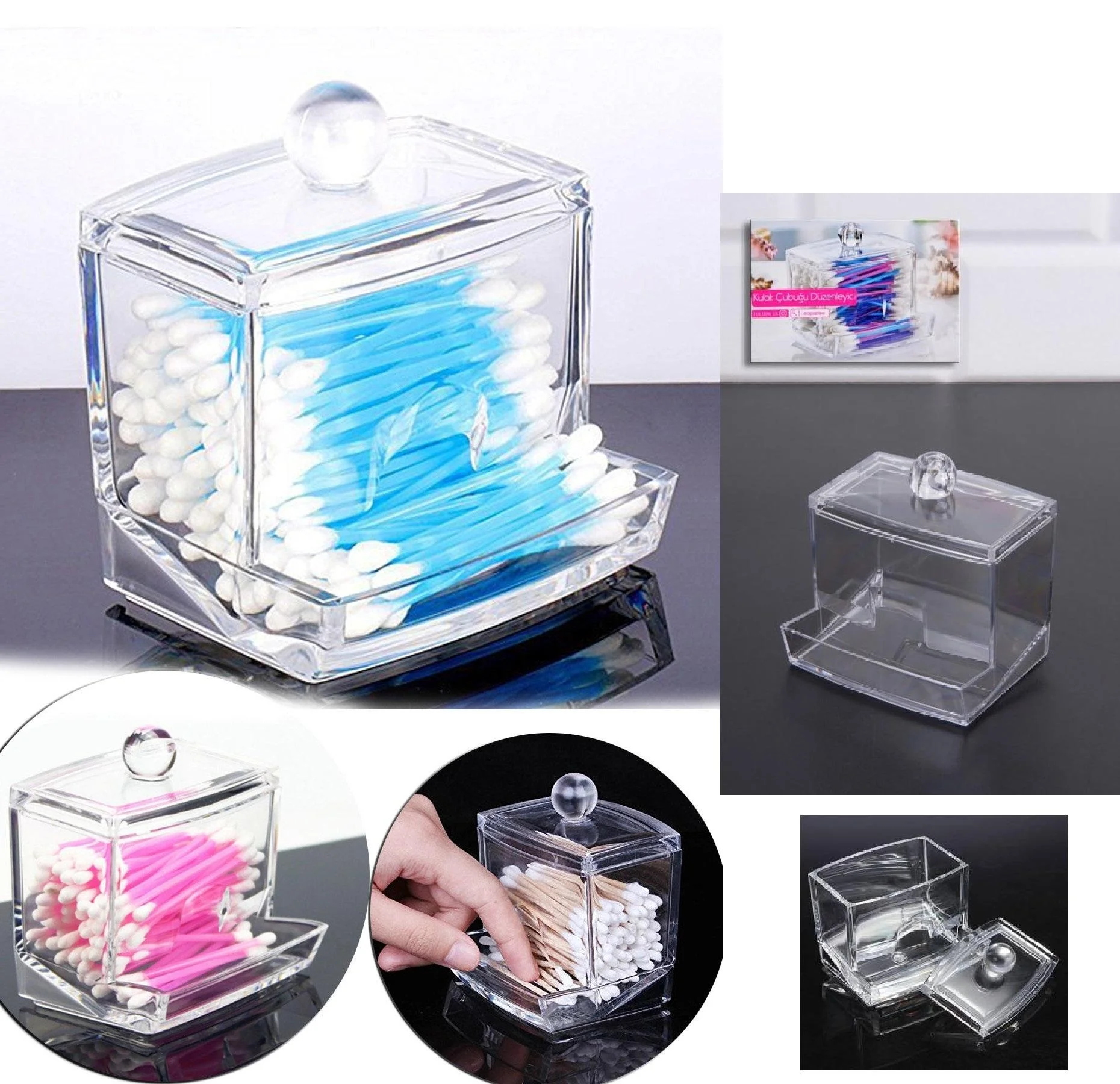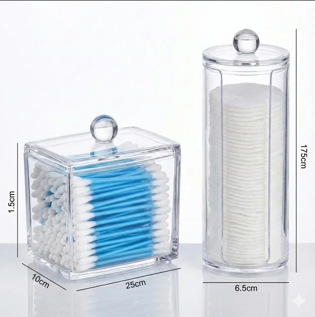 Banyo ve makyaj masanızda dağınıklığa son vermek ve her şeyi elinizin altında tutmak için tasarlanmış şeffaf akrilik Kulak Çubuğu ve Makyaj Pamuğu Organizeri ile tanışın! Bu şık ve pratik set, günlük güzellik rutininizi kolaylaştırmak için iki temel ürününüzü zarif bir şekilde bir araya getiriyor.