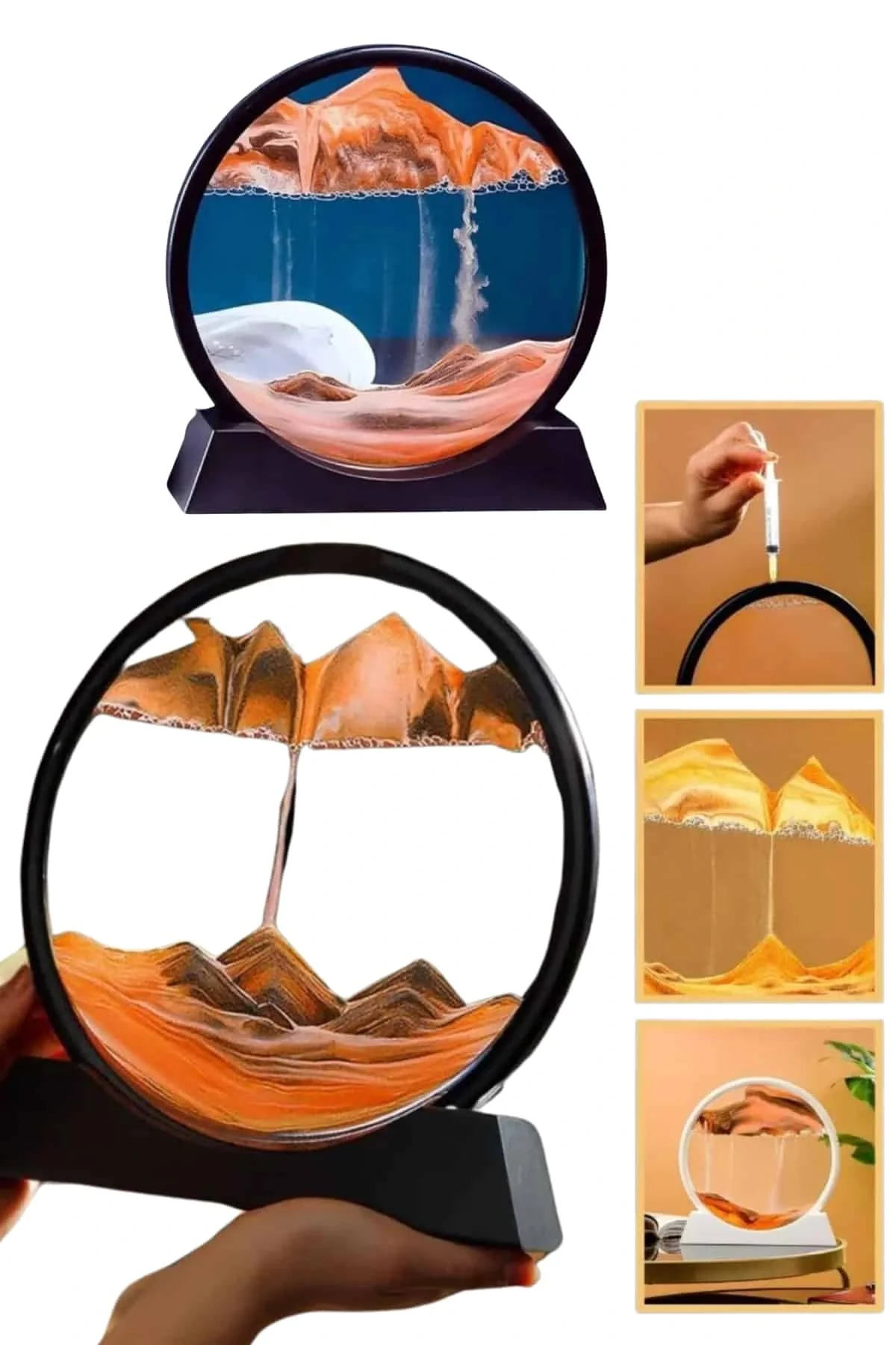 Dekoratif Kum Sulu Kum Saati Yuvarlak Şık Kum Tablosu Kum Saati Şeklinde Kum Tablo