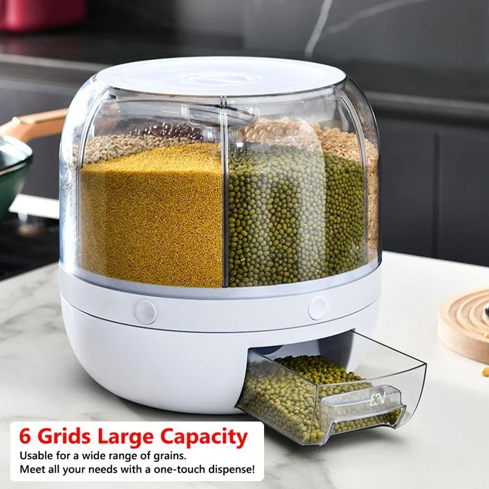Kuru Gıda Ve Bakliyat Organizeri 360° Dönebilen 6 Bölmeli Ayrıştırıcılı Hava Geçirmez 360 Derece Dönen Gıda Dağıtıcılı Saklama Kutusu Bakliyat Organizeri 360° Dönebilen 6 Bölmeli Ayrıştırıcılı Hava Geçirmez Saklama Kabı Hava geçirmez kuru depolama sistemi ile slikon mühürlü kolay kilitli kapak. Dayanıklı ve kolay istiflenebilir, çok yer kaplamaz. Bulaşık makinesinde yıkanabilir. 360 Derece Dönüş Ergonomik Tasarım Pratik Kullanım